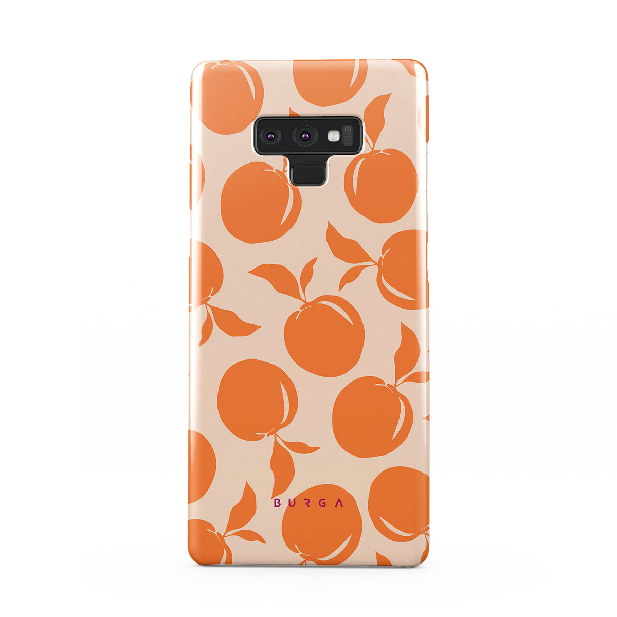 Picture a sun-soaked grove where ripe, juicy peaches glow with a radiant orange vibrance, their succulent aroma filling the warm air. Our Peach Fuzz design infuses your Samsung Galaxy Note 9 phone case with a lively, sun-kissed charm, perfectly capturing the essence of carefree, joyful summer days.