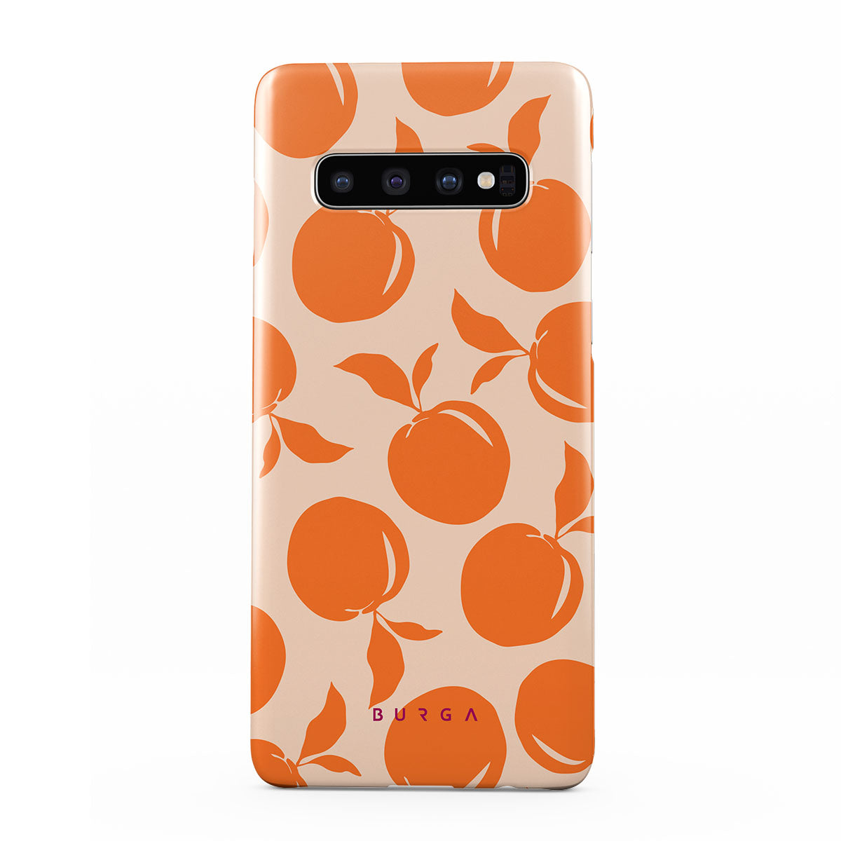 Picture a sun-soaked grove where ripe, juicy peaches glow with a radiant orange vibrance, their succulent aroma filling the warm air. Our Peach Fuzz design infuses your Samsung Galaxy S10 Plus phone case with a lively, sun-kissed charm, perfectly capturing the essence of carefree, joyful summer days.