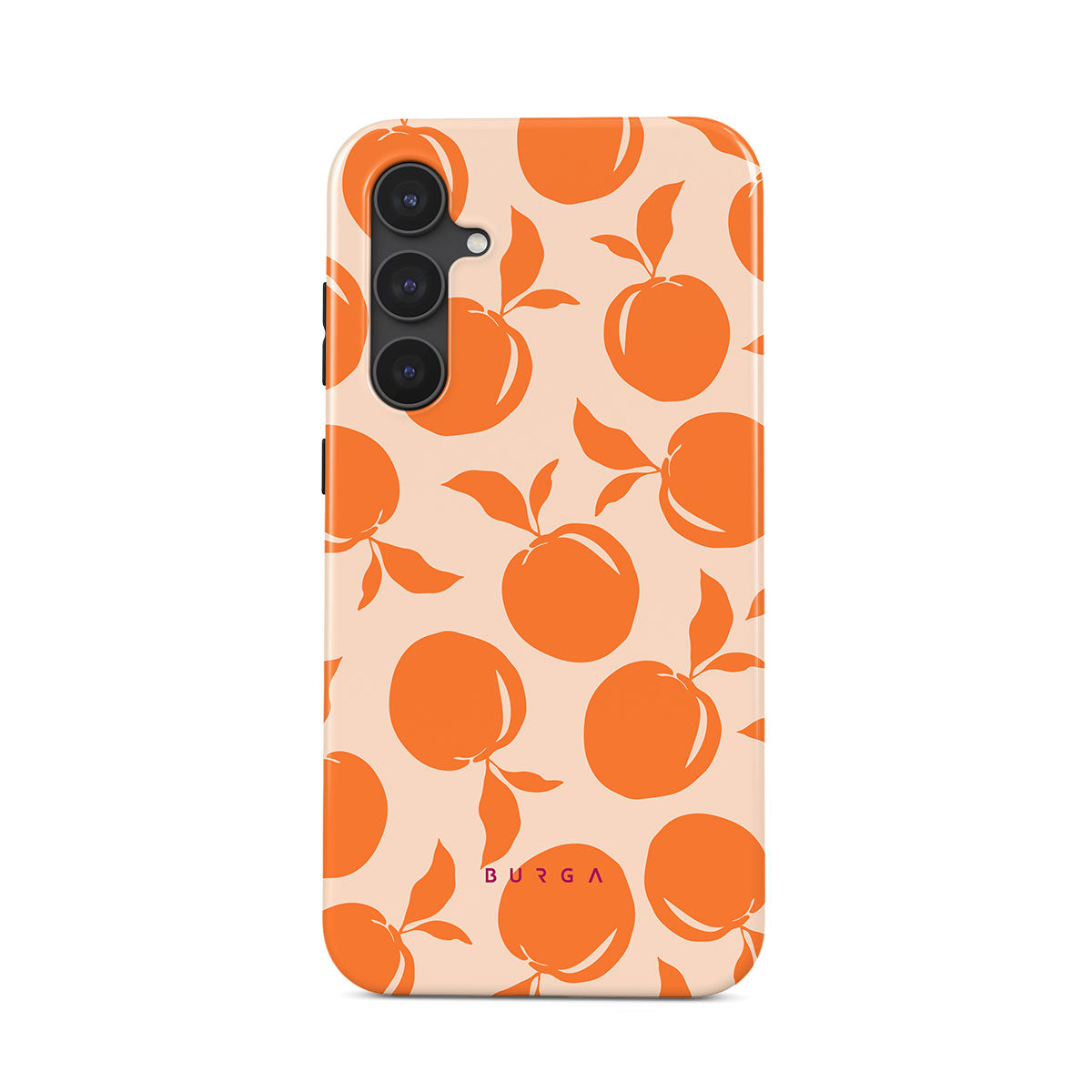 Picture a sun-soaked grove where ripe, juicy peaches glow with a radiant orange vibrance, their succulent aroma filling the warm air. Our Peach Fuzz design infuses your Samsung Galaxy S23 FE phone case with a lively, sun-kissed charm, perfectly capturing the essence of carefree, joyful summer days.