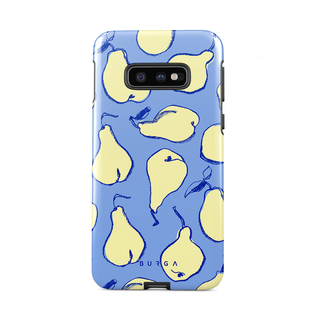 Step into a playful paradise with Pear Crush. Each pear is outlined with a lively, hand-drawn charm. This design brings a playful vibe to your Samsung Galaxy S10E phone case, perfect for those who love to embrace the lighter, more joyful side of life.