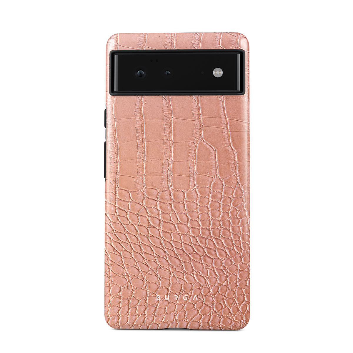 Our Pink Croco Google Pixel 6a phone case features a classic crocodile design reimagined and showcased in a soft coral shade. The new take on the dangerous animal print will add a touch of softness to your style while simultaneously offering heavy-duty protection to your device.