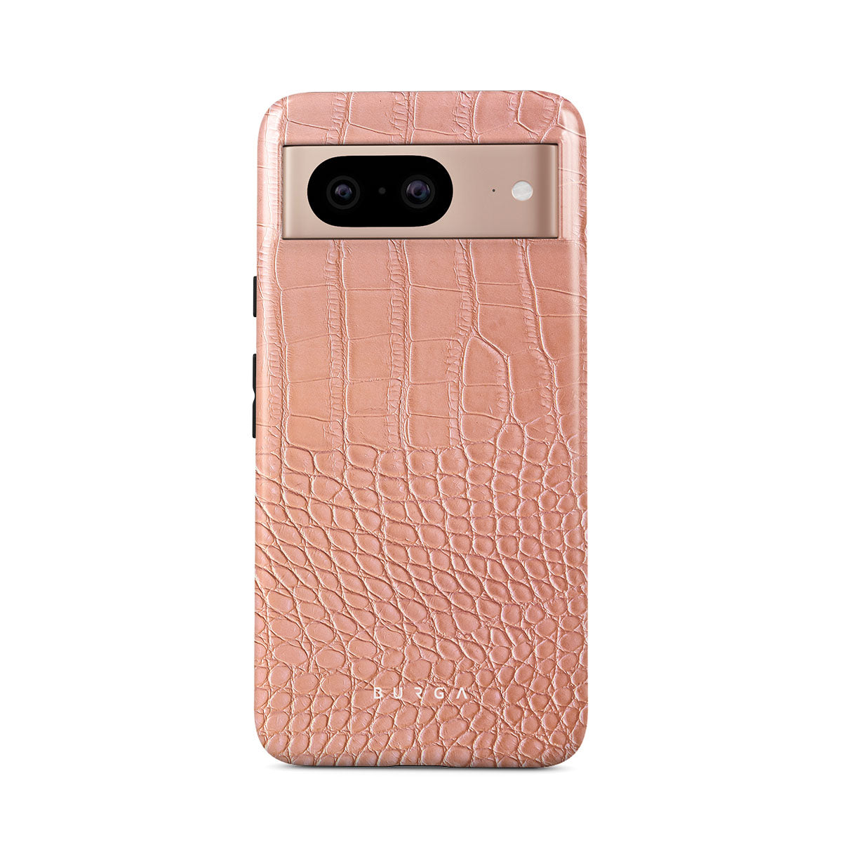Our Pink Croco Google Pixel 8 phone case features a classic crocodile design reimagined and showcased in a soft coral shade. The new take on the dangerous animal print will add a touch of softness to your style while simultaneously offering heavy-duty protection to your device.