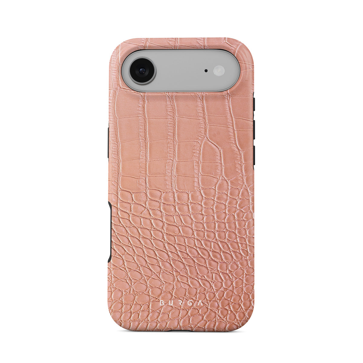Our Pink Croco iPhone Air phone case features a classic crocodile design reimagined and showcased in a soft coral shade. The new take on the dangerous animal print will add a touch of softness to your style while simultaneously offering heavy-duty protection to your device.