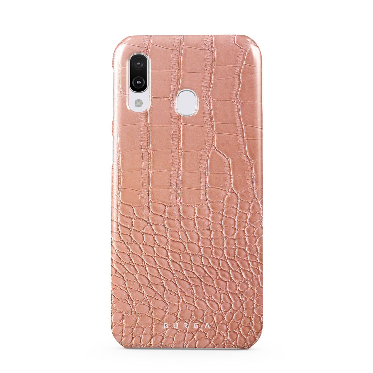 Our Pink Croco Samsung Galaxy A40 phone case features a classic crocodile design reimagined and showcased in a soft coral shade. The new take on the dangerous animal print will add a touch of softness to your style while simultaneously offering heavy-duty protection to your device.