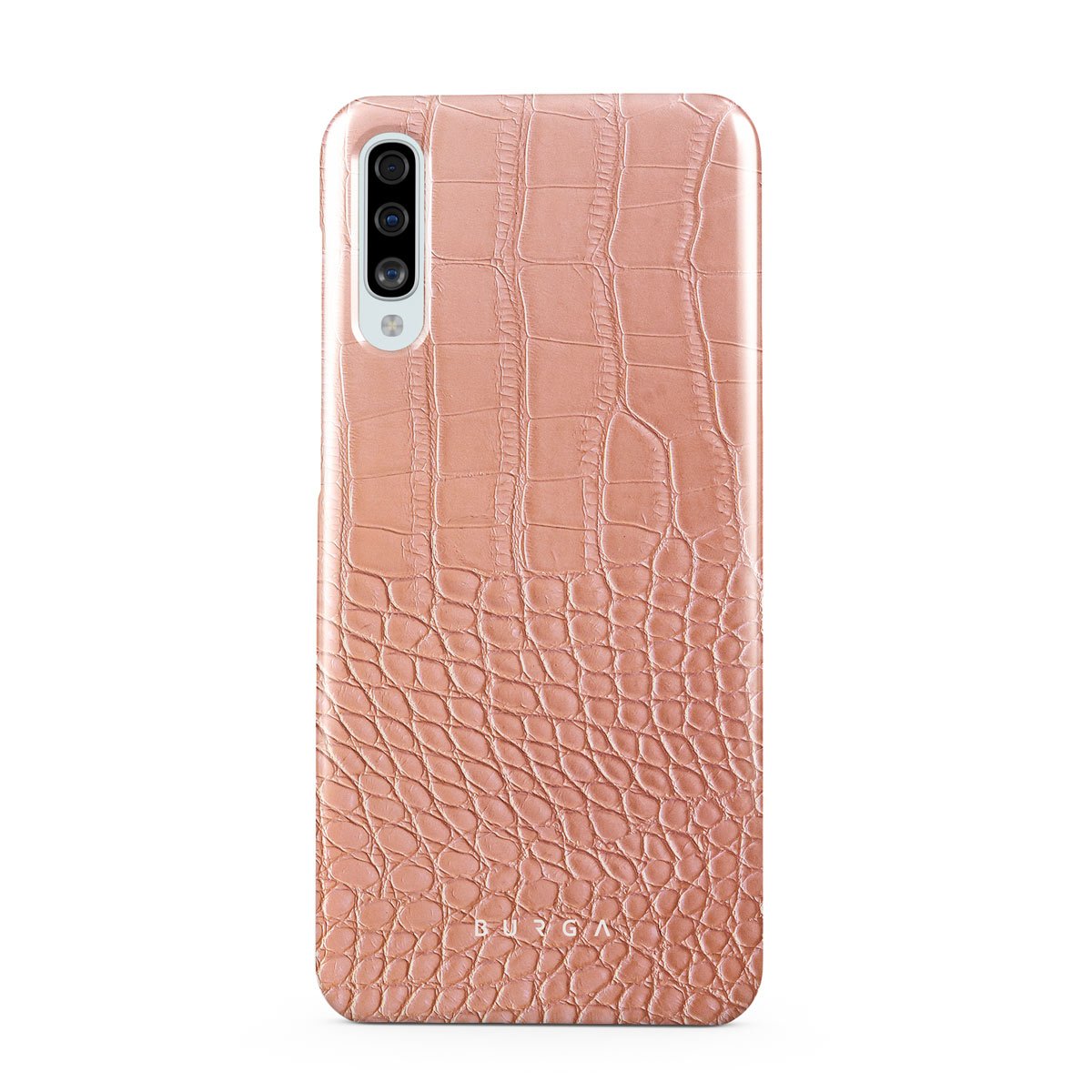 Our Pink Croco Samsung Galaxy A50 phone case features a classic crocodile design reimagined and showcased in a soft coral shade. The new take on the dangerous animal print will add a touch of softness to your style while simultaneously offering heavy-duty protection to your device.