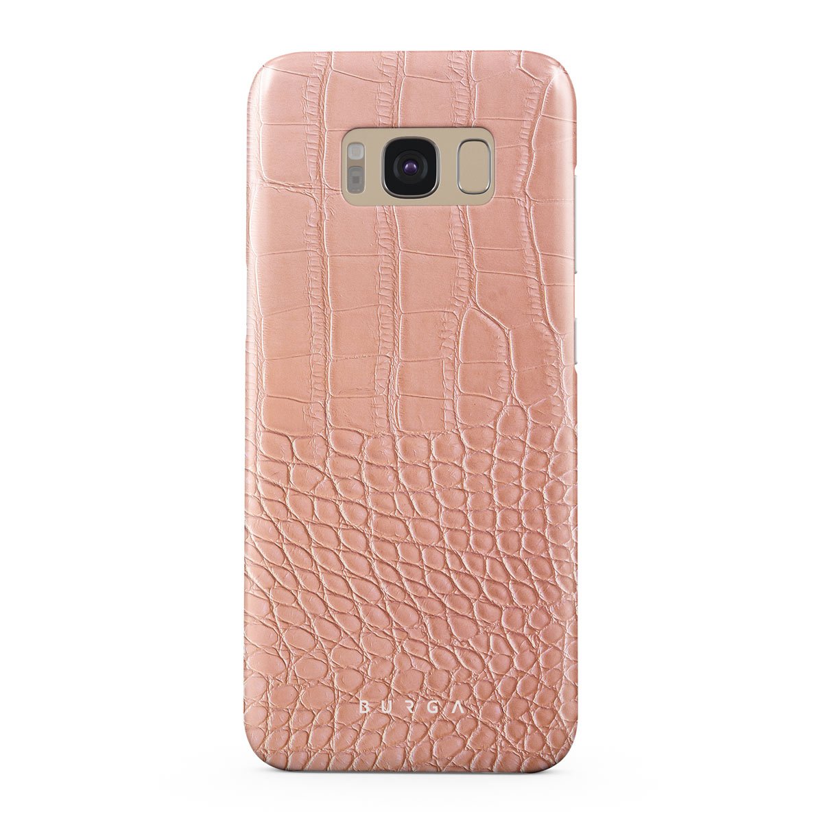 Our Pink Croco Samsung Galaxy S8 phone case features a classic crocodile design reimagined and showcased in a soft coral shade. The new take on the dangerous animal print will add a touch of softness to your style while simultaneously offering heavy-duty protection to your device.