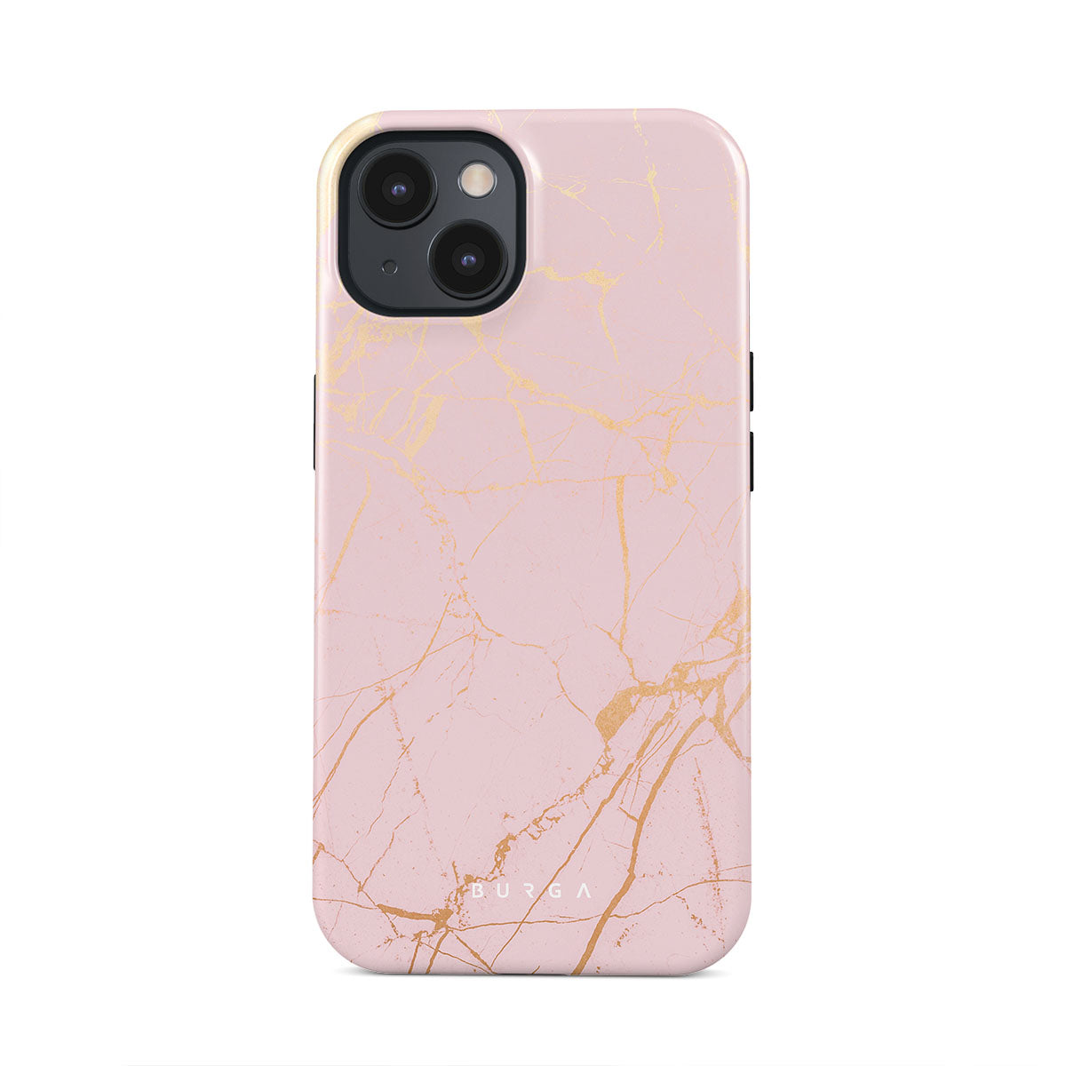 Growing under the beautiful sky and warmed by the rays of the sunshine, when ripped, peach offers you sweetness and softness. This is why our Peachy Gold iPhone 15 phone case design adds a bit of golden color to the pink marble dream making a protective phone case both pretty and durable.