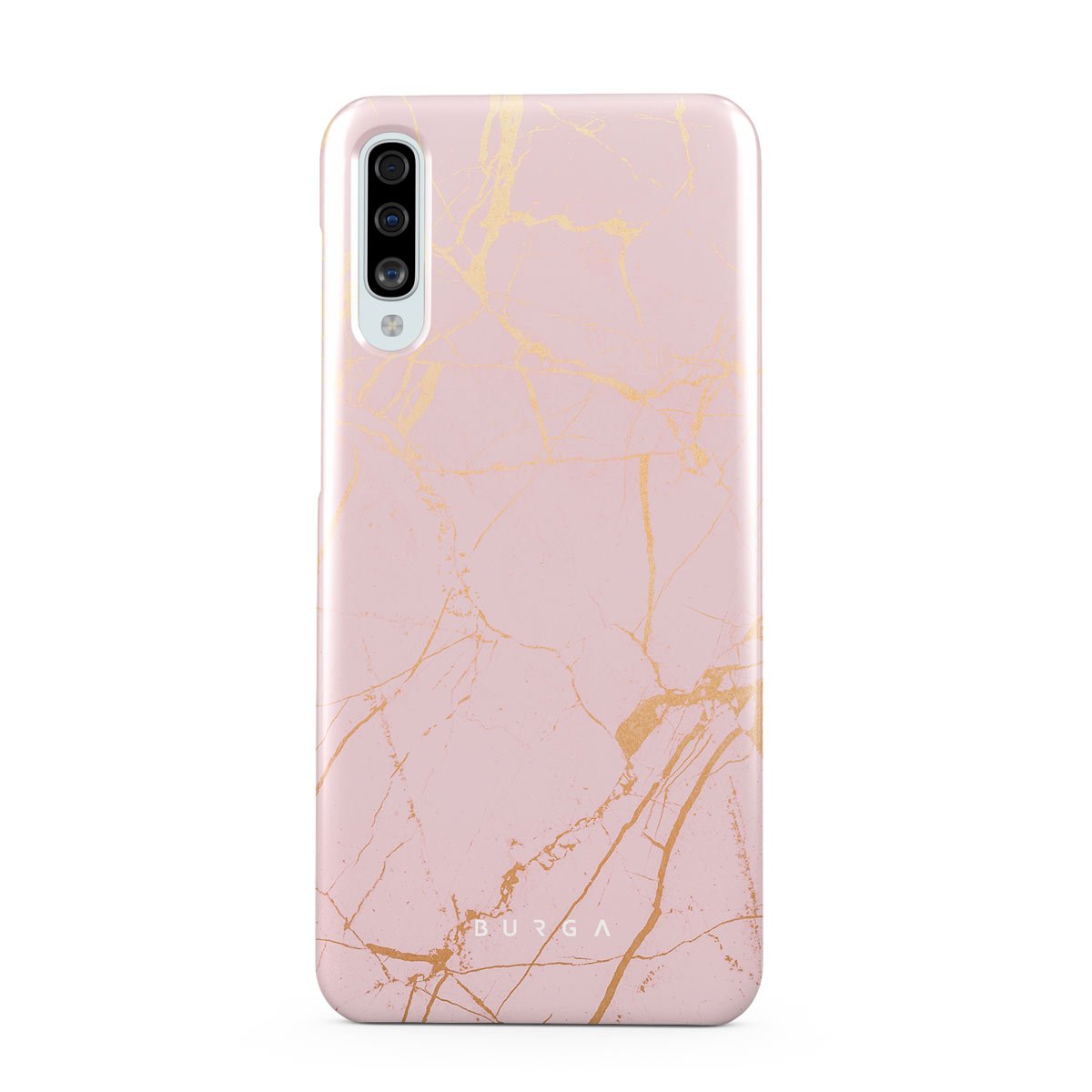 Growing under the beautiful sky and warmed by the rays of the sunshine, when ripped, peach offers you sweetness and softness. This is why our Peachy Gold Samsung Galaxy A50 phone case design adds a bit of golden color to the pink marble dream making a protective phone case both pretty and durable.