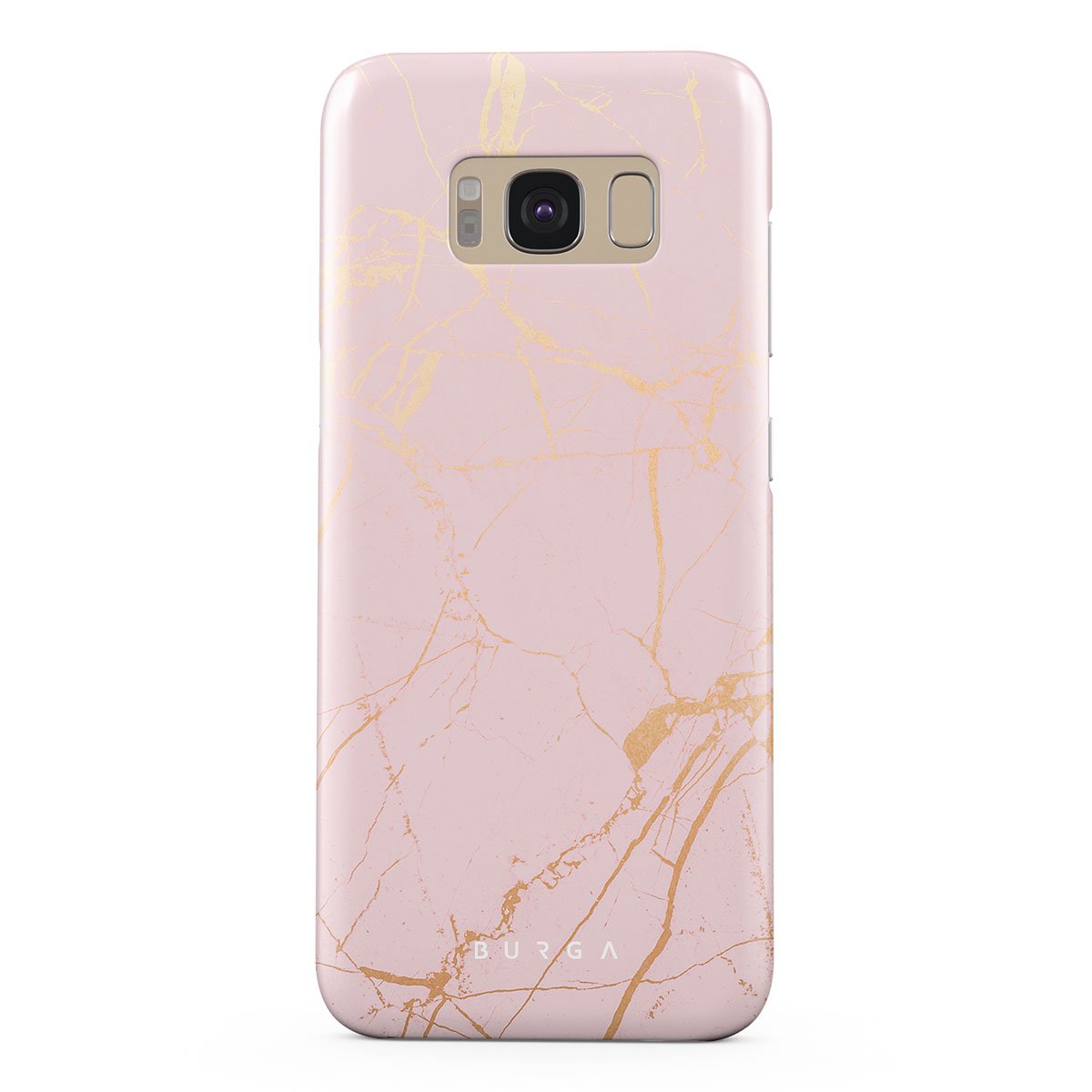 Growing under the beautiful sky and warmed by the rays of the sunshine, when ripped, peach offers you sweetness and softness. This is why our Peachy Gold Samsung Galaxy S8 phone case design adds a bit of golden color to the pink marble dream making a protective phone case both pretty and durable.