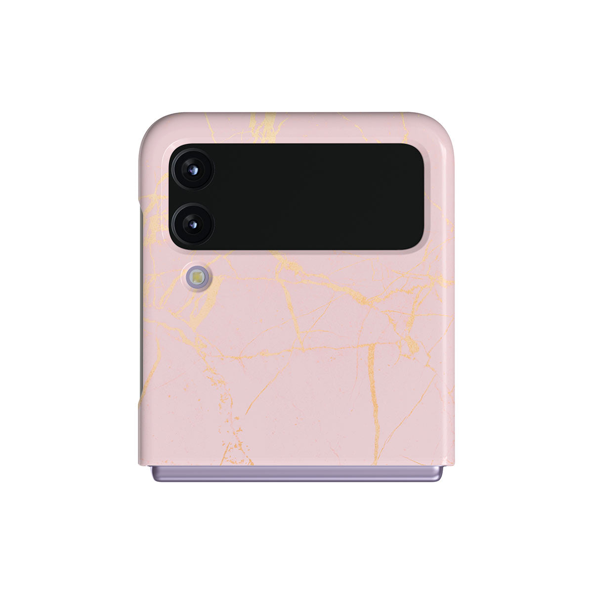 Growing under the beautiful sky and warmed by the rays of the sunshine, when ripped, peach offers you sweetness and softness. This is why our Peachy Gold Samsung Galaxy Z Flip 4 phone case design adds a bit of golden color to the pink marble dream making a protective phone case both pretty and durable.