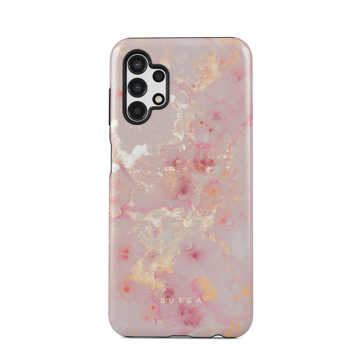 The sun is shining and creates a golden reflection in the corals. Take this scenery with yourself with our pretty and pink Golden Coral Samsung Galaxy A13 4G phone case. Add protection to your phone with a unique pink marble pattern that is guaranteed to catch everyone's eye.