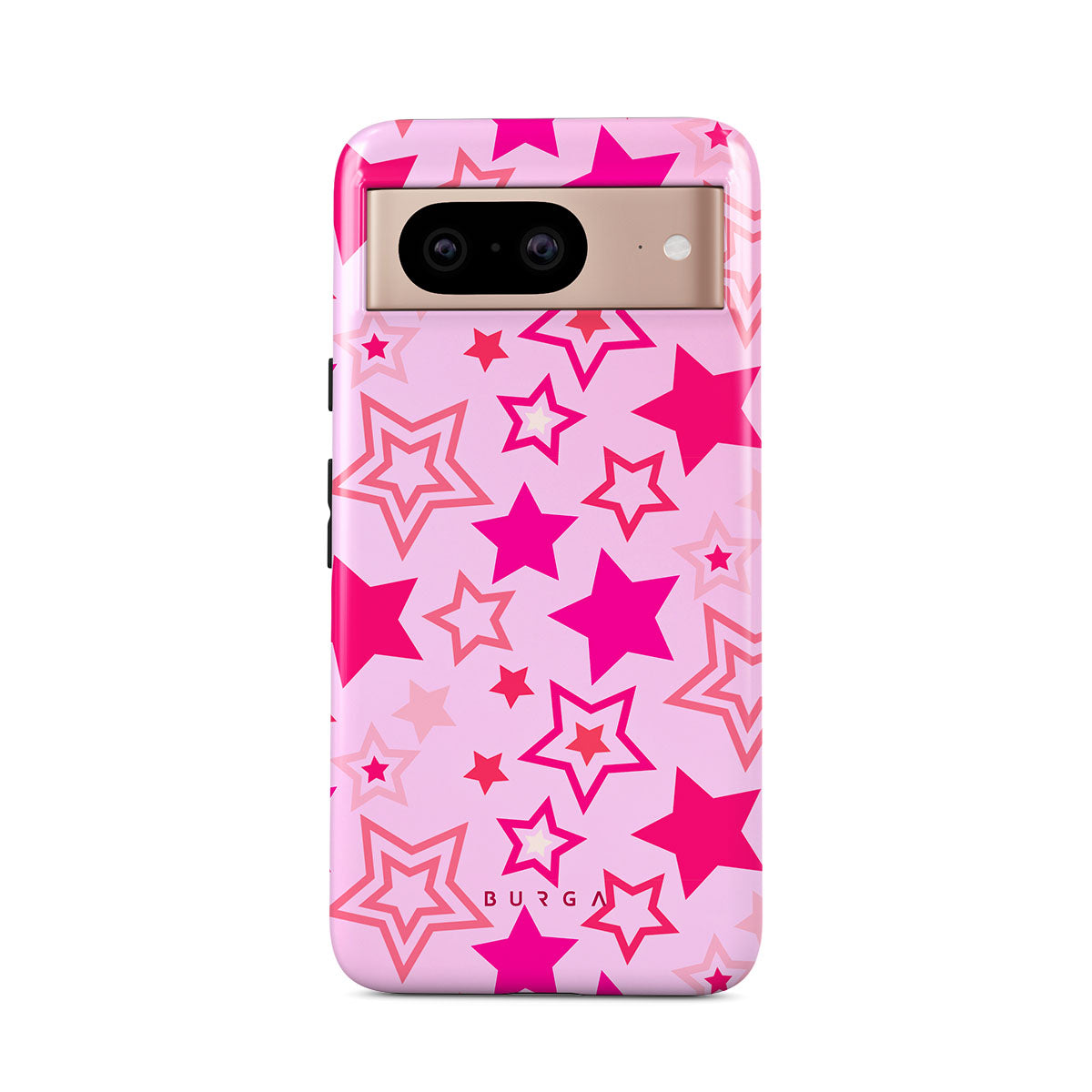 Buckle up for a starry ride, and let's twirl under the Plastic Sky. Neon stars shimmering across a cheeky rose-tinted galaxy create a playful space-disco atmosphere. Be the center of the universe with our Plastic Sky Google Pixel 8 phone case!