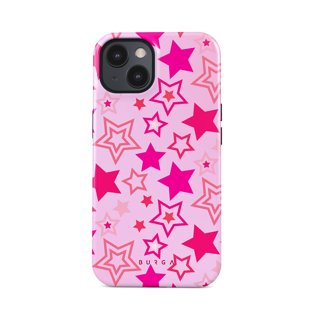 Buckle up for a starry ride, and let's twirl under the Plastic Sky. Neon stars shimmering across a cheeky rose-tinted galaxy create a playful space-disco atmosphere. Be the center of the universe with our Plastic Sky iPhone 13 phone case!