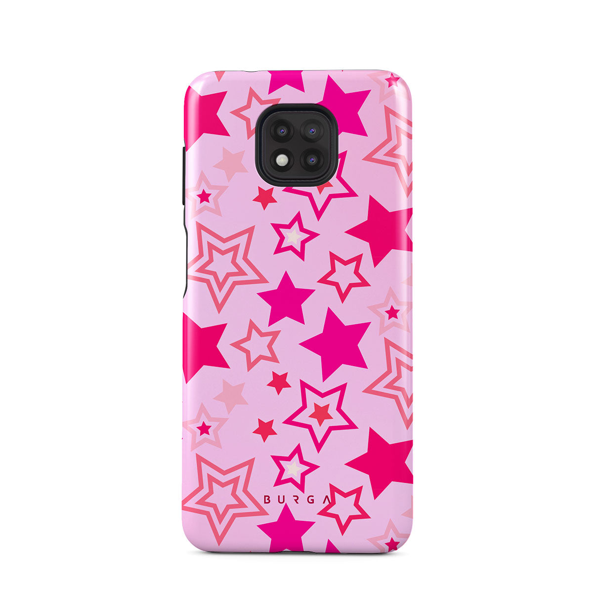 Buckle up for a starry ride, and let's twirl under the Plastic Sky. Neon stars shimmering across a cheeky rose-tinted galaxy create a playful space-disco atmosphere. Be the center of the universe with our Plastic Sky Motorola Moto G Power 2021 phone case!