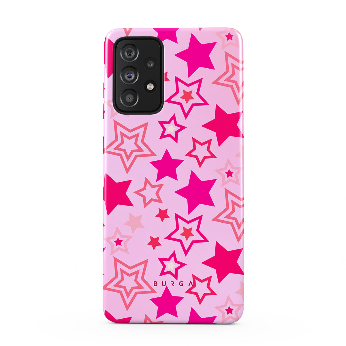 Buckle up for a starry ride, and let's twirl under the Plastic Sky. Neon stars shimmering across a cheeky rose-tinted galaxy create a playful space-disco atmosphere. Be the center of the universe with our Plastic Sky Samsung Galaxy A52 / A52S 4G / 5G phone case!