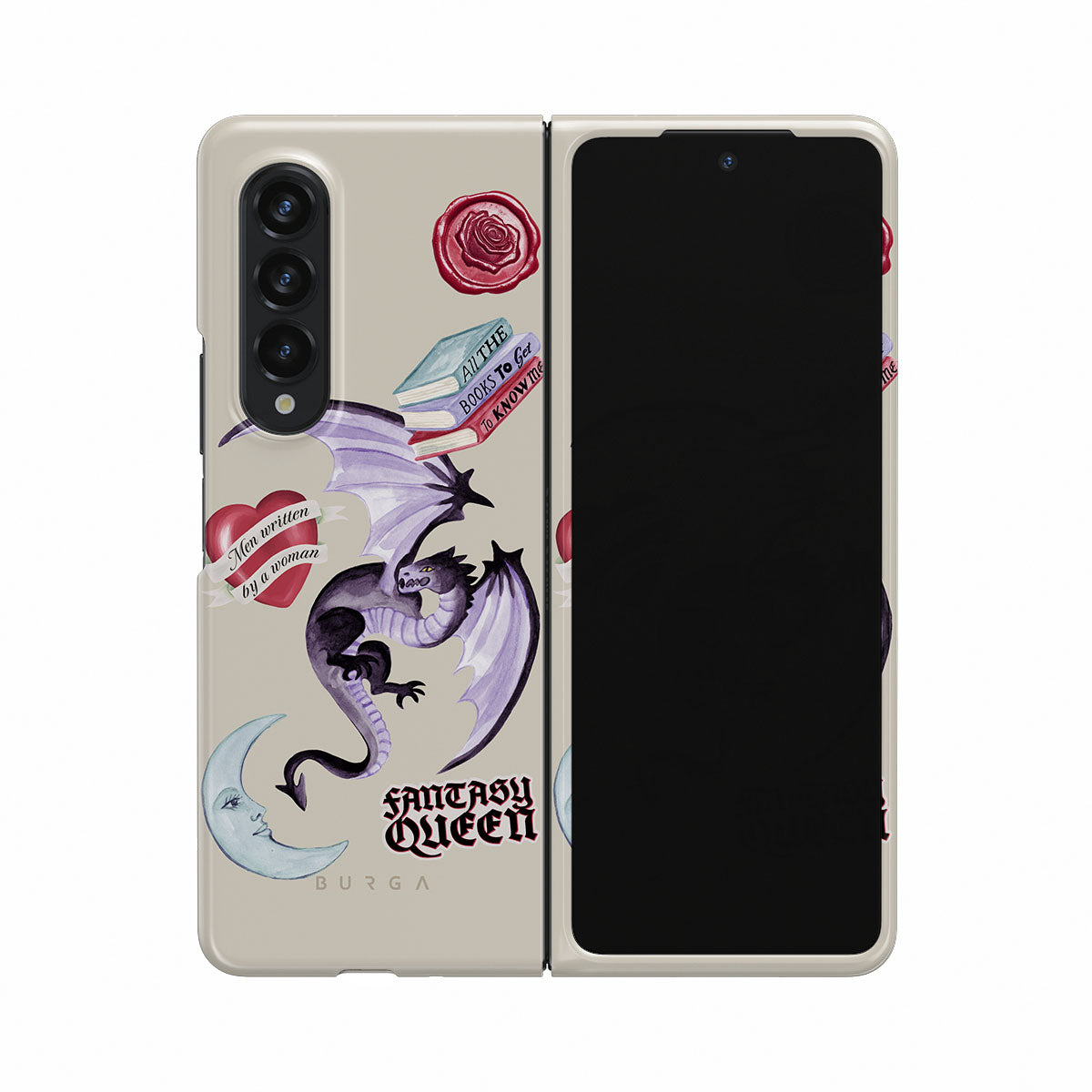 I have a Samsung galaxy z fold 3 and I bought 2 cases before this one off Amazon and the 2nd case I bought kept sliding off the front screen portion causing me to scratch my screen. Well I found burga and wow they snap right on and the designs are SUPER cute and they are well made. Shipping took a bit but that'd because I'm in the US