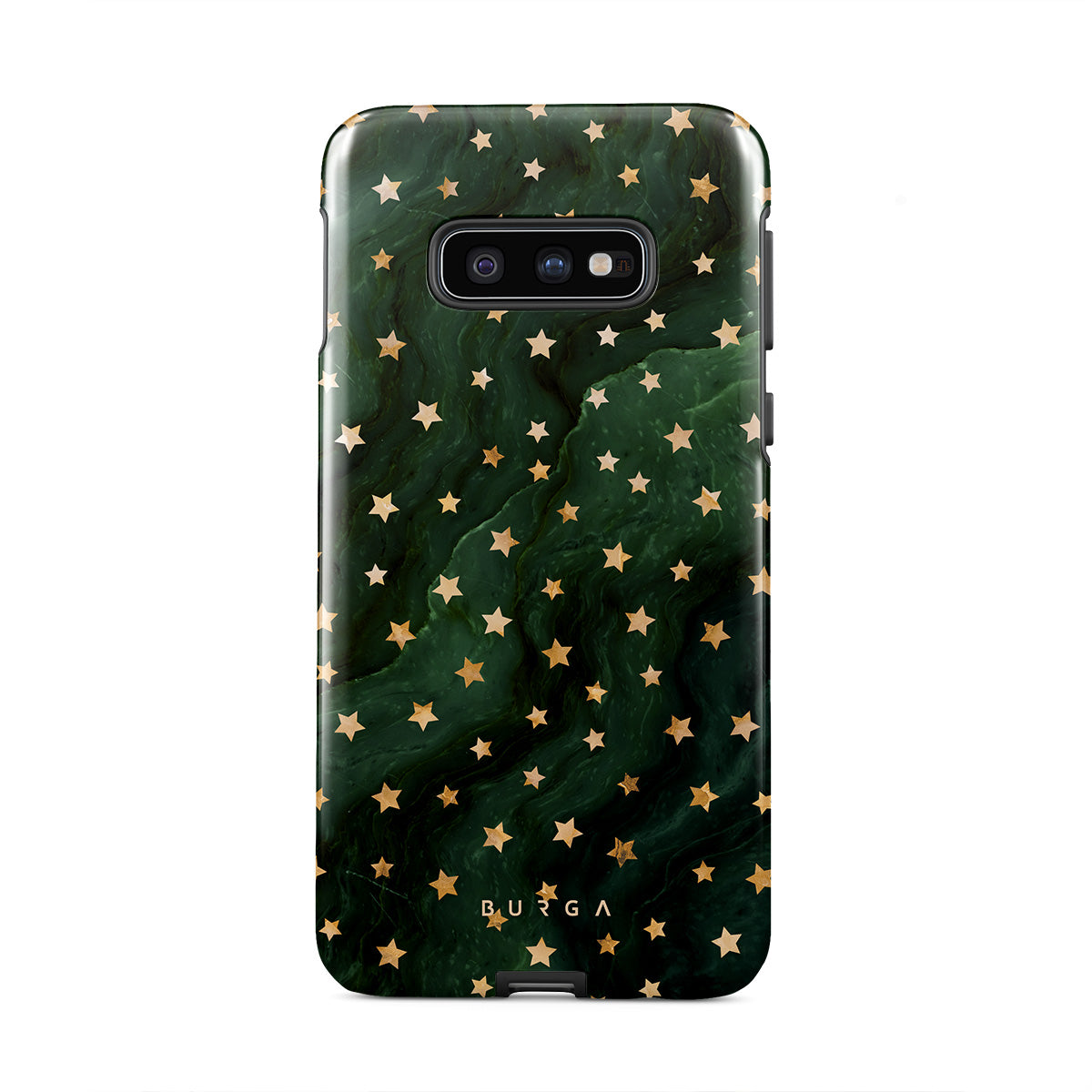 Our Prince Charming Samsung Galaxy S10E phone case is the only prince your device will ever need. Deep green marble with some magical stars will indeed look extraordinary in your accessories collection. We can also promise that this prince, although green, will not turn into a frog, and he will always be there for your phone!
