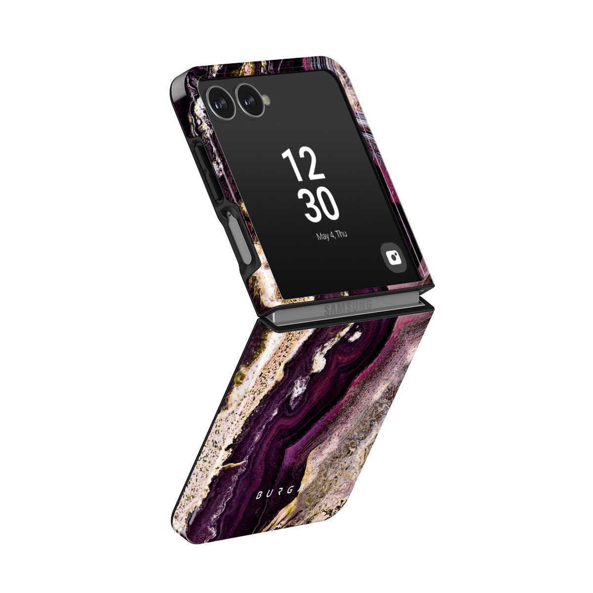 Marble meets geode look in our durable Purple Skies Samsung Galaxy Z Flip 7 phone case. You can rest sure that our hard-shell purple marble phone case will protect your device from any unexpected falls while adding elegance and luxury to your style.