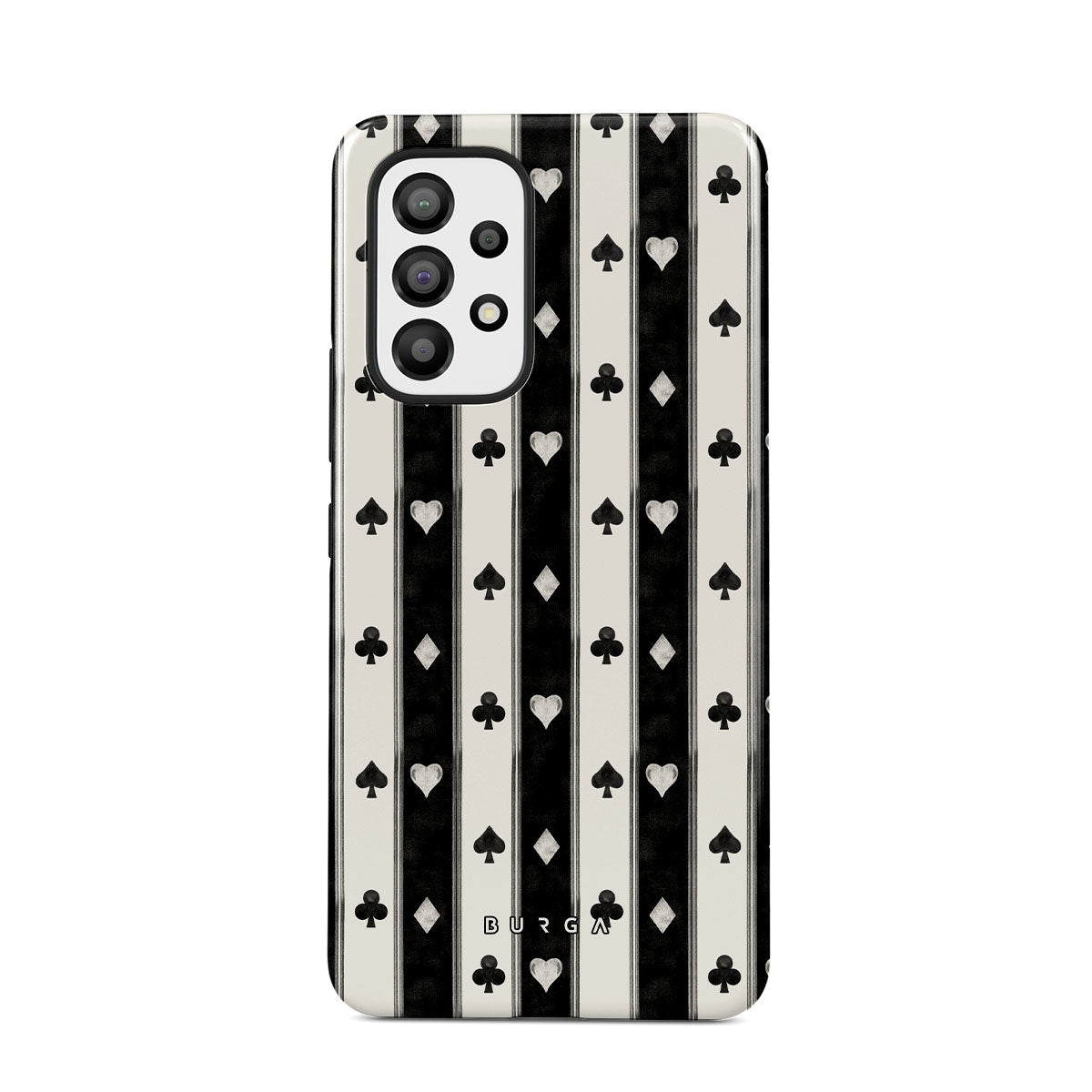 Black and white, power and play. The Queen’s Court Samsung Galaxy A23 4G / 5G phone case design doesn’t ask for permission—it takes what it wants. If you’re not moving pieces, you’re one of them.