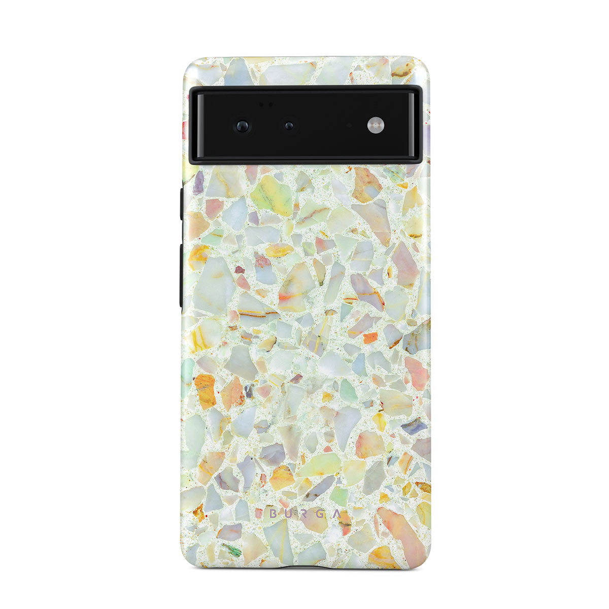 Sun is shining bright, creating rainbows on the path as the light and warm rain just washed the tiles. Walk around barefoot and feel the magic in your steps. Take this summery feeling encased in a cute Google Pixel 6a phone case that is as protective as mesmerizing the rainbow can be.