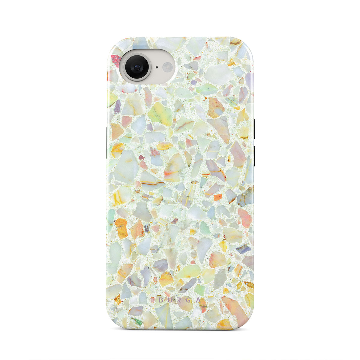 Sun is shining bright, creating rainbows on the path as the light and warm rain just washed the tiles. Walk around barefoot and feel the magic in your steps. Take this summery feeling encased in a cute iPhone 16e phone case that is as protective as mesmerizing the rainbow can be.