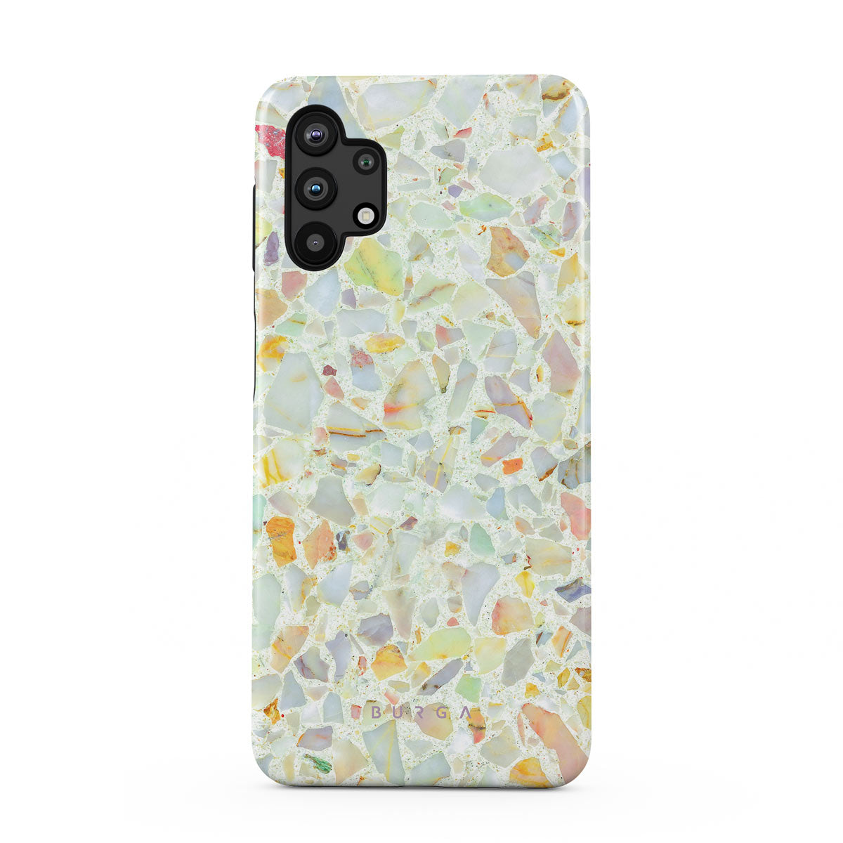 Sun is shining bright, creating rainbows on the path as the light and warm rain just washed the tiles. Walk around barefoot and feel the magic in your steps. Take this summery feeling encased in a cute Samsung Galaxy A32 5G phone case that is as protective as mesmerizing the rainbow can be.