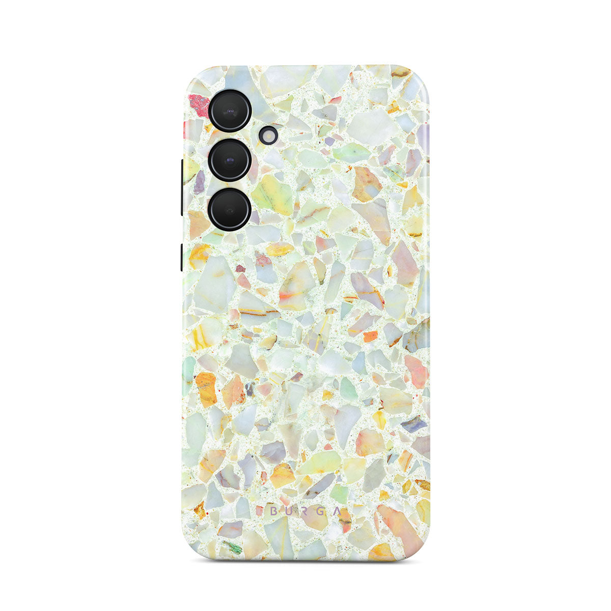 Sun is shining bright, creating rainbows on the path as the light and warm rain just washed the tiles. Walk around barefoot and feel the magic in your steps. Take this summery feeling encased in a cute Samsung Galaxy A51 phone case that is as protective as mesmerizing the rainbow can be.