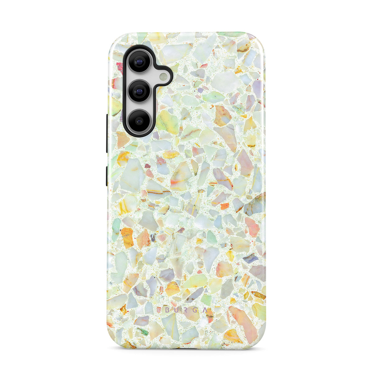 Sun is shining bright, creating rainbows on the path as the light and warm rain just washed the tiles. Walk around barefoot and feel the magic in your steps. Take this summery feeling encased in a cute Samsung Galaxy A55 phone case that is as protective as mesmerizing the rainbow can be.