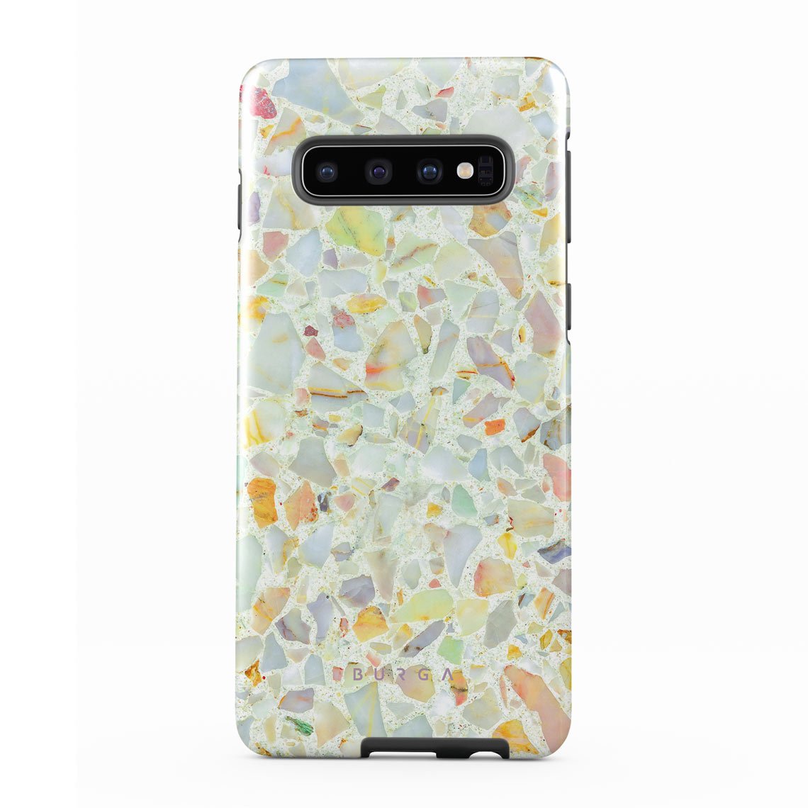Sun is shining bright, creating rainbows on the path as the light and warm rain just washed the tiles. Walk around barefoot and feel the magic in your steps. Take this summery feeling encased in a cute Samsung Galaxy S10 phone case that is as protective as mesmerizing the rainbow can be.