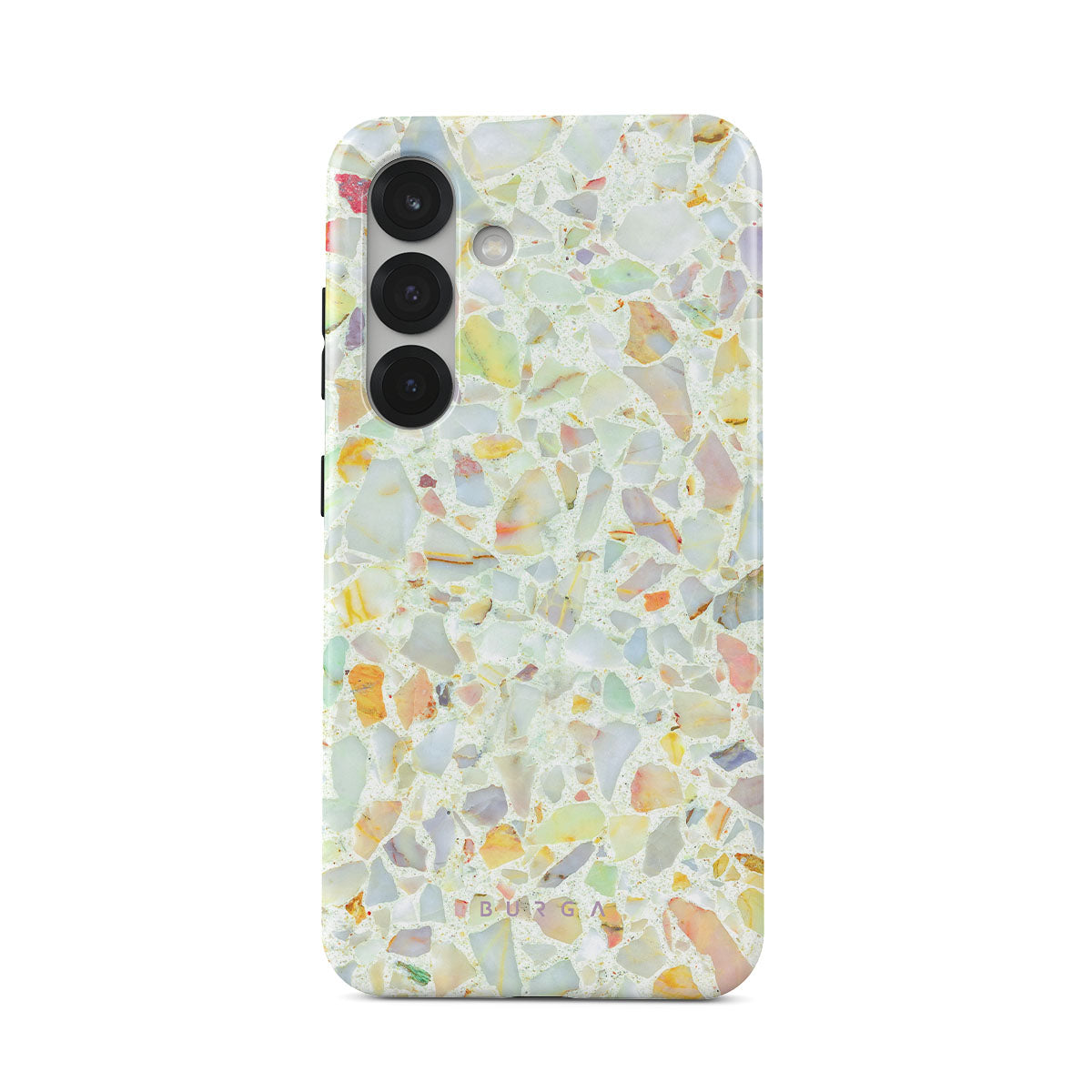 Sun is shining bright, creating rainbows on the path as the light and warm rain just washed the tiles. Walk around barefoot and feel the magic in your steps. Take this summery feeling encased in a cute Samsung Galaxy S25 Plus phone case that is as protective as mesmerizing the rainbow can be.