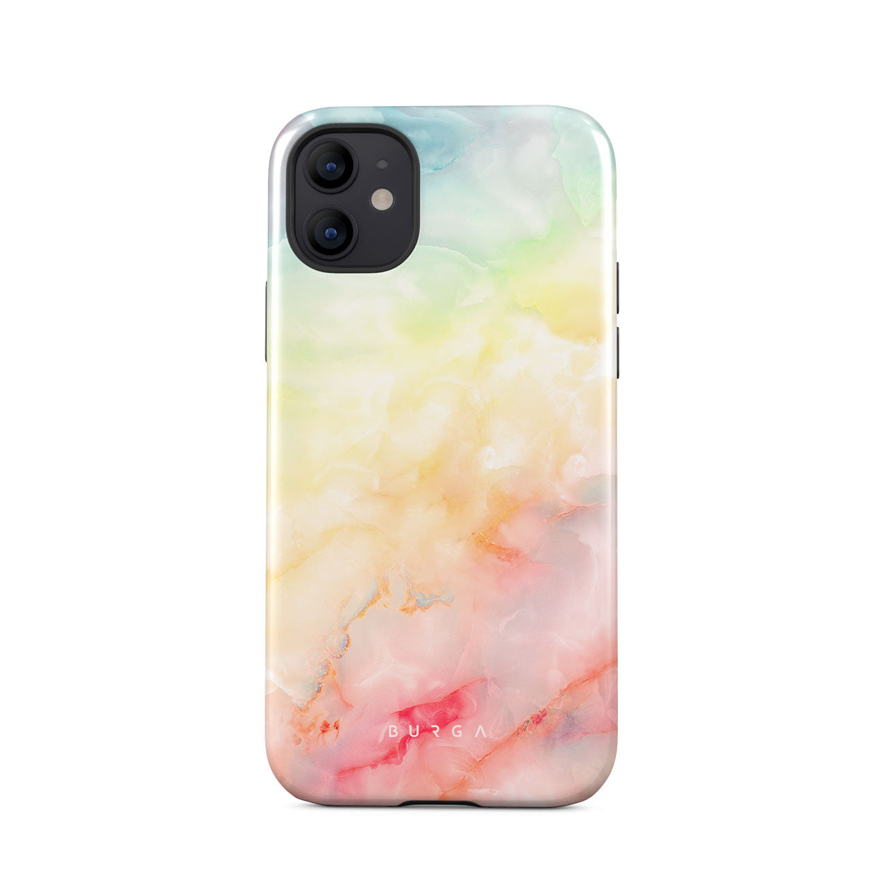 Color your world with our New Flame iPhone 12 phone case. Inspired by the rainbow, this case is guaranteed to brighten your style. The dreamy pastel rainbow and the shockproof design of our case will keep your phone safe and sound while looking better than ever.