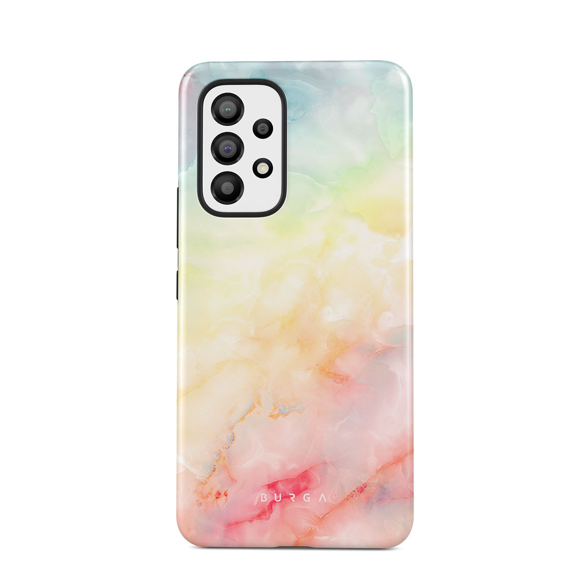 Color your world with our New Flame Samsung Galaxy A53 phone case. Inspired by the rainbow, this case is guaranteed to brighten your style. The dreamy pastel rainbow and the shockproof design of our case will keep your phone safe and sound while looking better than ever.