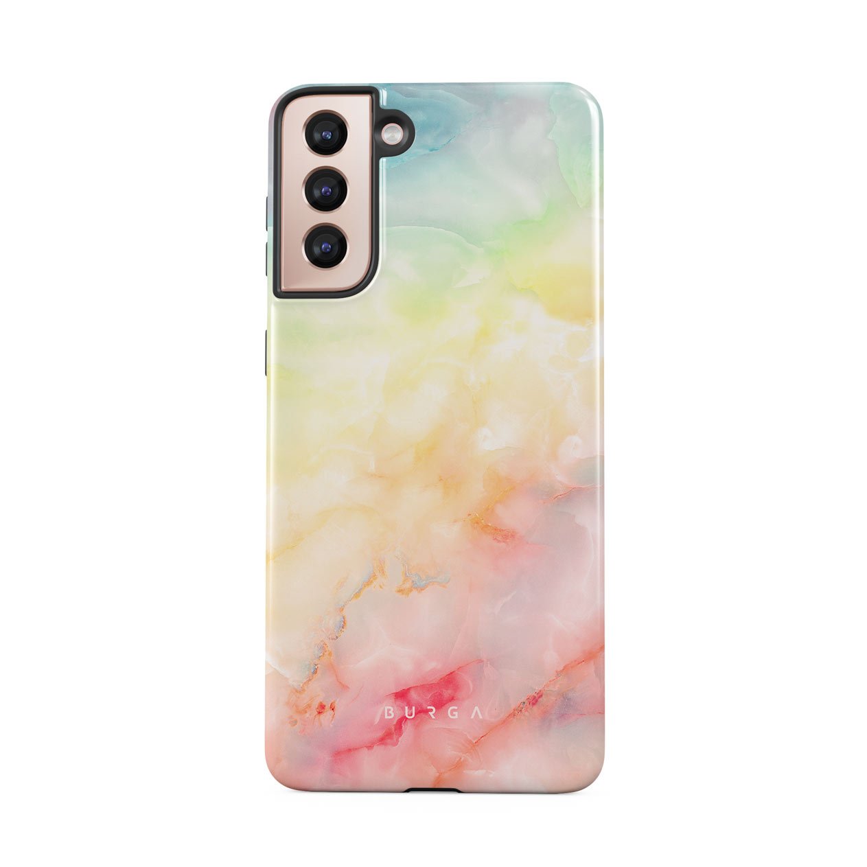 Color your world with our New Flame Samsung Galaxy S21 Plus phone case. Inspired by the rainbow, this case is guaranteed to brighten your style. The dreamy pastel rainbow and the shockproof design of our case will keep your phone safe and sound while looking better than ever.