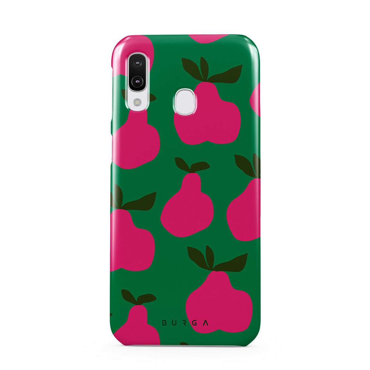 A symphony of refreshing pink pears against a backdrop of lush greeneryRefresco is a sip of summer, a zesty reminder of the sweetness surrounding us. With a lively design, this Samsung Galaxy A40 phone case turns your device into a playful masterpiece, inviting you to embrace the joy and vibrancy of life.