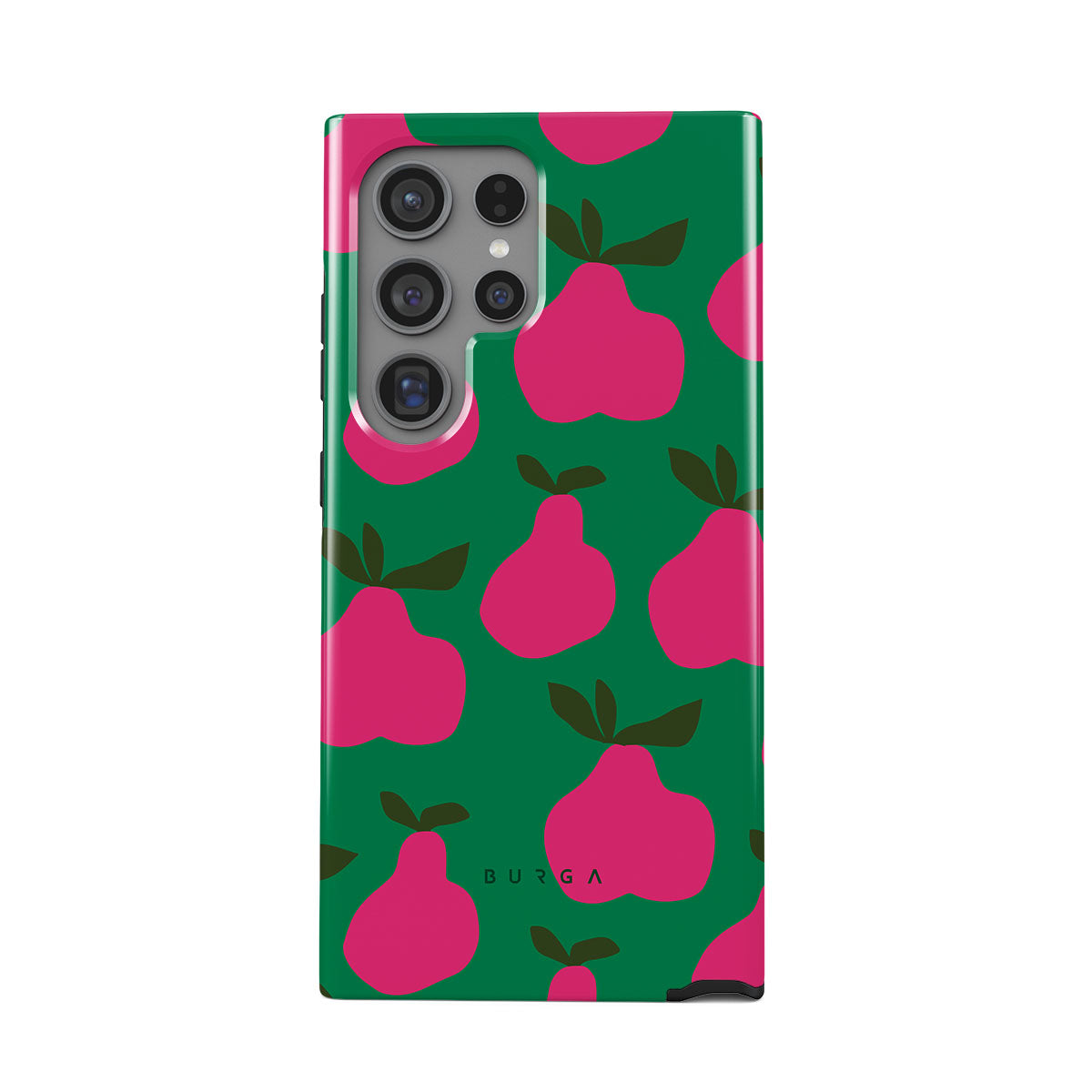 A symphony of refreshing pink pears against a backdrop of lush greenery—Refresco is a sip of summer, a zesty reminder of the sweetness surrounding us. With a lively design, this Samsung Galaxy S24 Ultra phone case turns your device into a playful masterpiece, inviting you to embrace the joy and vibrancy of life.