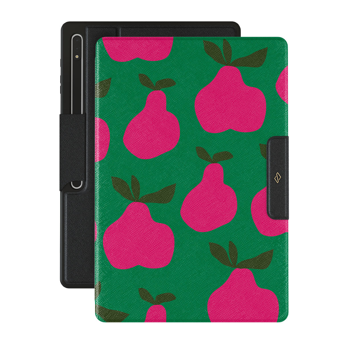 A symphony of refreshing pink pears against a backdrop of lush greenery—Refresco is a sip of summer, a zesty reminder of the sweetness surrounding us. With a lively design, this Samsung Galaxy Tab S10 Ultra folio case turns your device into a playful masterpiece, inviting you to embrace the joy and vibrancy of life.