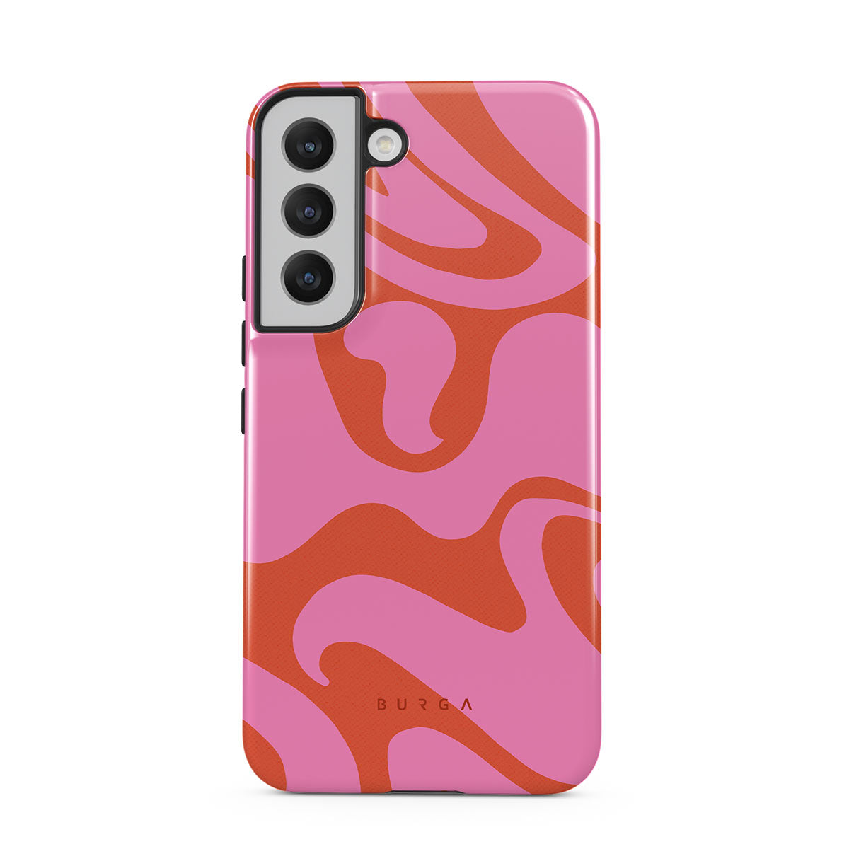 Bold and big take of a liquid swirl can be met in our Ride the Wave Samsung Galaxy S22 phone case. It will not only turn your device into a beautiful art piece but will also keep it safe and sound while encasing it in a design from a 70s art gallery!