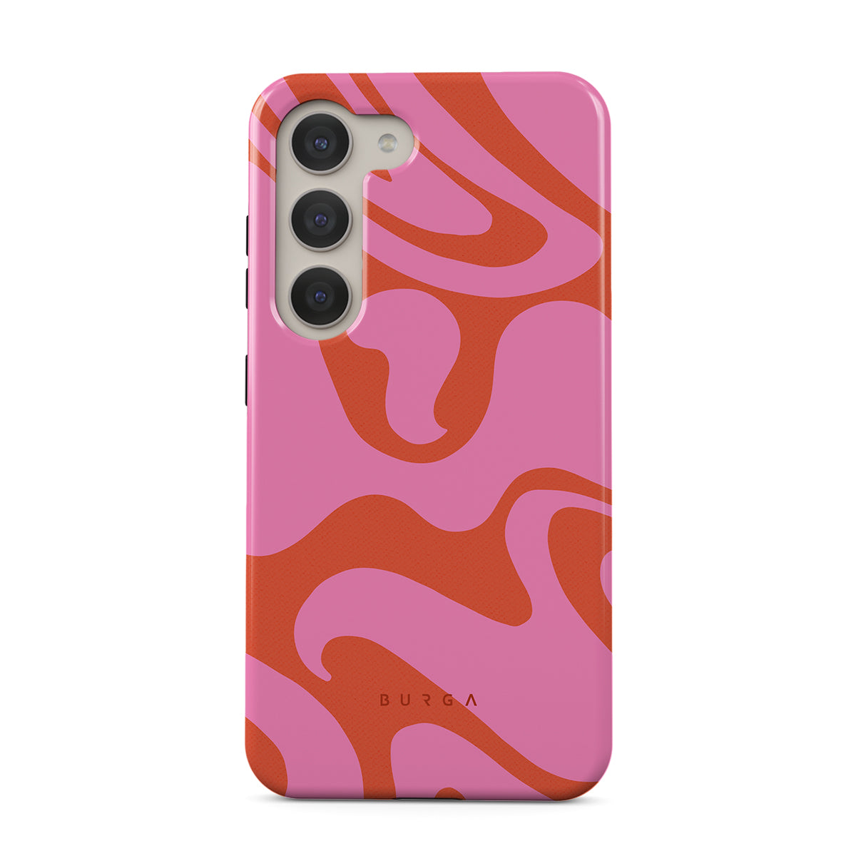 Bold and big take of a liquid swirl can be met in our Ride the Wave Samsung Galaxy S23 phone case. It will not only turn your device into a beautiful art piece but will also keep it safe and sound while encasing it in a design from a 70s art gallery!