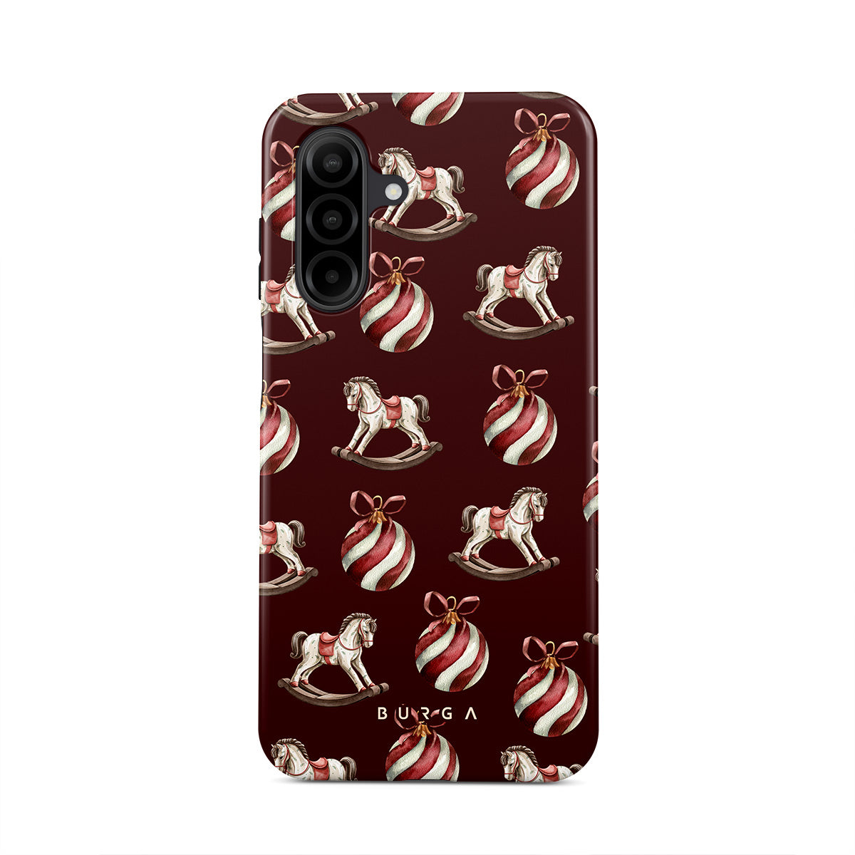Jingle all the way with this playful Samsung Galaxy A26 5G phone case design. Featuring rocking horses and candy-striped bells, our Rocking Around design transports you back to childhood moments of decorating the tree and waiting for Santa. It’s the ultimate throwback to vintage Christmas charm.