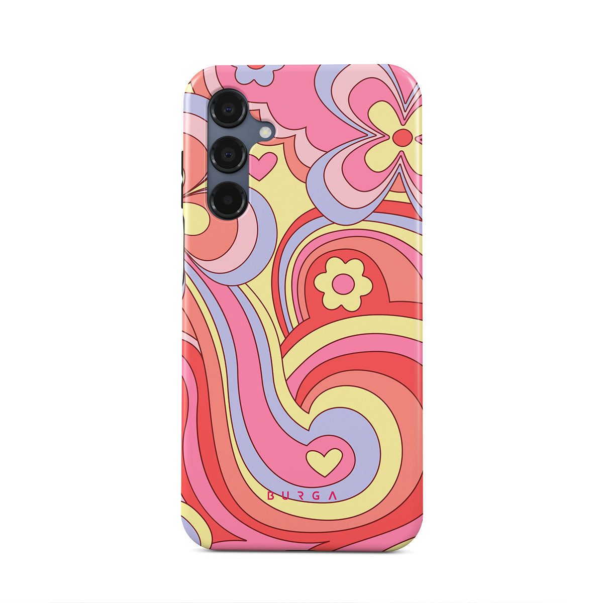 A design embodying a radiant, cheerful life filled with hope and joy. A celebration in hues, a mix of vibrant pink, yellow, and blue swirls. Roller Disco is where fashion meets fun. With beautiful pastels blending into a head-turning style, every day feels like a party. Spin your Samsung Galaxy A16 phone case into the spotlight!