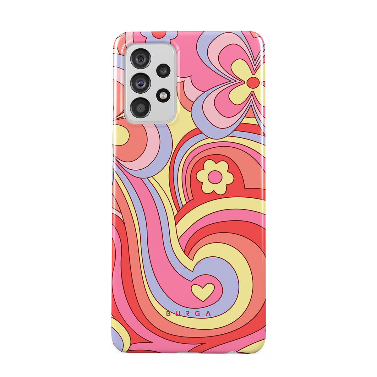 A design embodying a radiant, cheerful life filled with hope and joy. A celebration in hues, a mix of vibrant pink, yellow, and blue swirls. Roller Disco is where fashion meets fun. With beautiful pastels blending into a head-turning style, every day feels like a party. Spin your Samsung Galaxy A72 4G / 5G phone case into the spotlight!