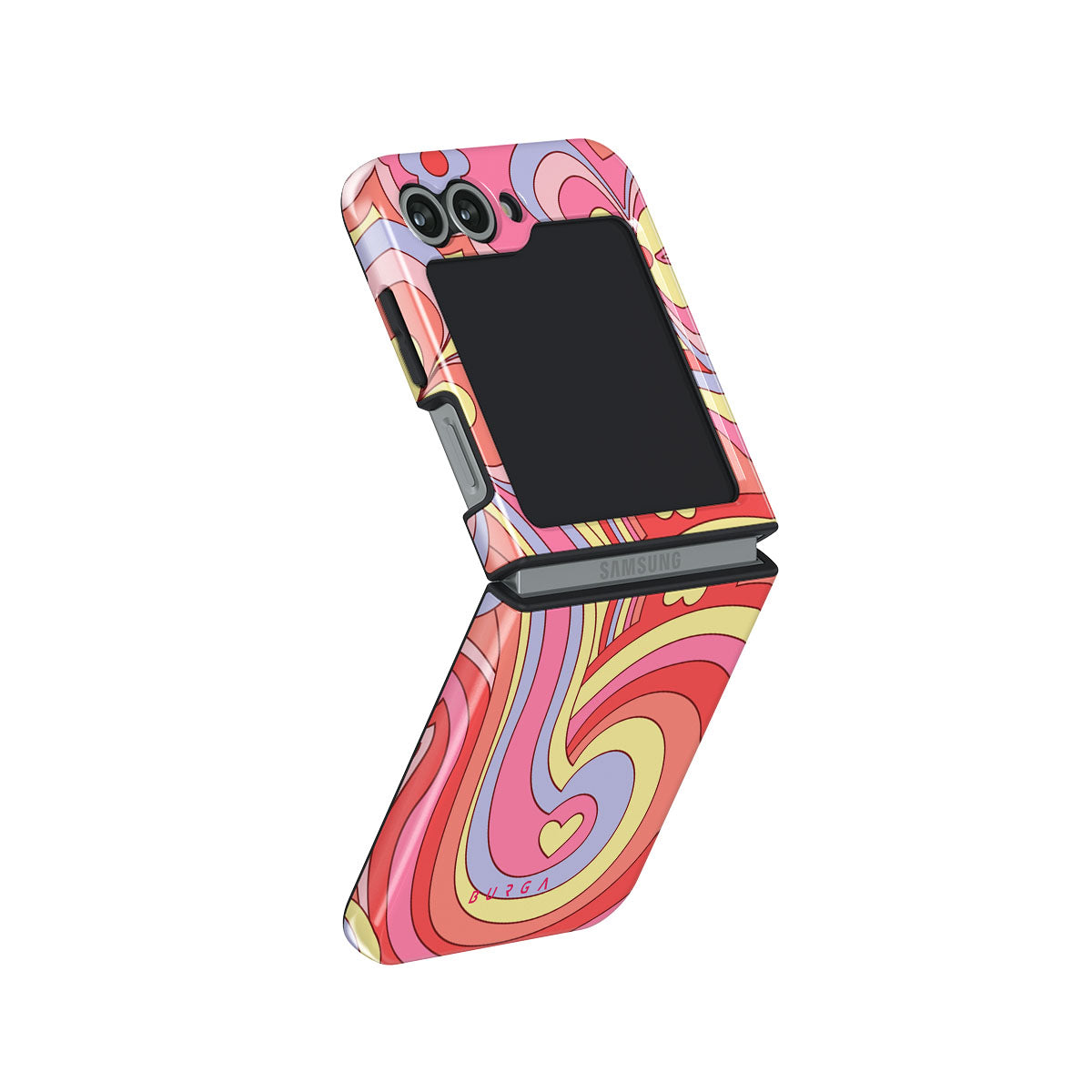A design embodying a radiant, cheerful life filled with hope and joy. A celebration in hues, a mix of vibrant pink, yellow, and blue swirls. Roller Disco is where fashion meets fun. With beautiful pastels blending into a head-turning style, every day feels like a party. Spin your Samsung Galaxy Z Flip 6 phone case into the spotlight!