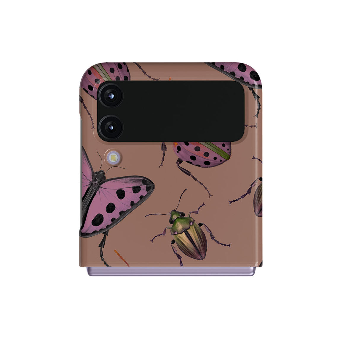 Embrace the symbiosis of nature with the Runaway Samsung Galaxy Z Flip 4 phone case, where the delicate beauty of butterflies meets the earthy charm of beetles. This design is a celebration of life's intricate balance, a reminder that everything in nature has its place.