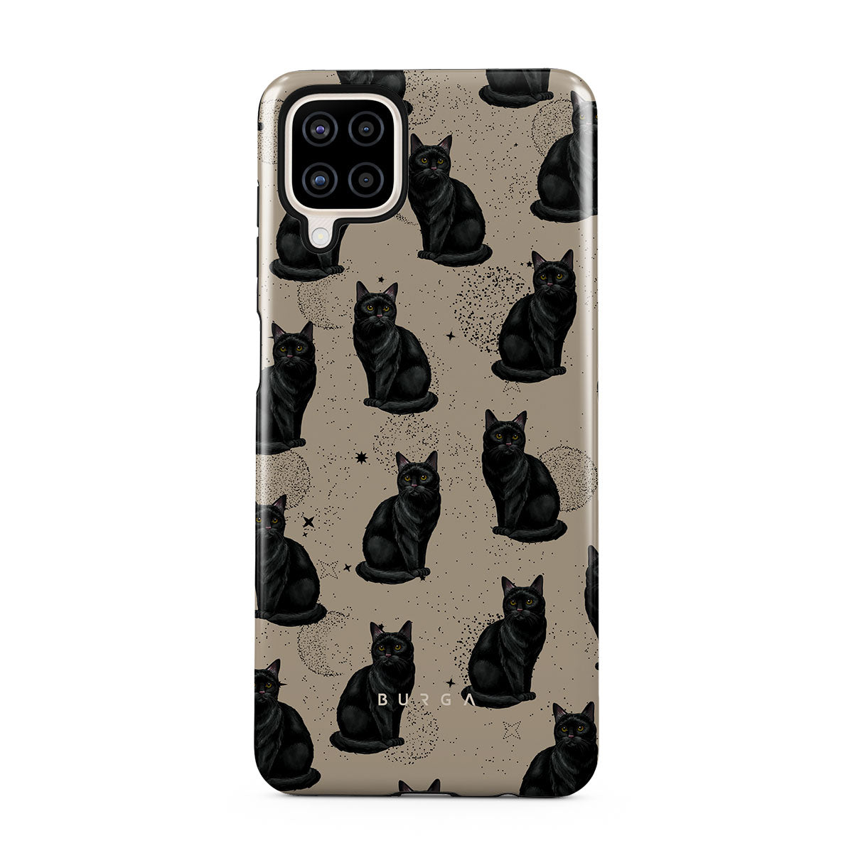 They say black cats are bad luck, but with our Salem Samsung Galaxy A12 4G phone case design, fortune follows wherever these little guardians go. These cats aren't just symbols; they’re your protectors in the mysterious world of style. Superstitious or not, this one’s got your back.