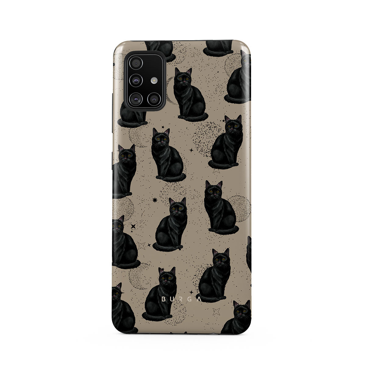 They say black cats are bad luck, but with our Salem Samsung Galaxy A71 4G phone case design, fortune follows wherever these little guardians go. These cats aren't just symbols; they’re your protectors in the mysterious world of style. Superstitious or not, this one’s got your back.