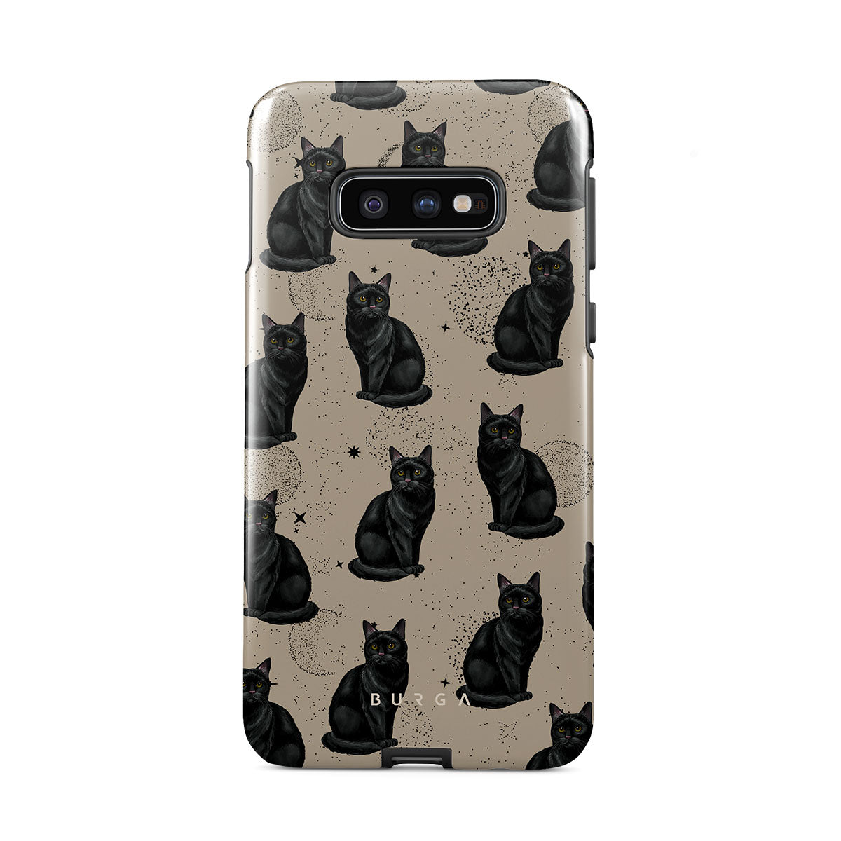 They say black cats are bad luck, but with our Salem Samsung Galaxy S10E phone case design, fortune follows wherever these little guardians go. These cats aren't just symbols; they’re your protectors in the mysterious world of style. Superstitious or not, this one’s got your back.