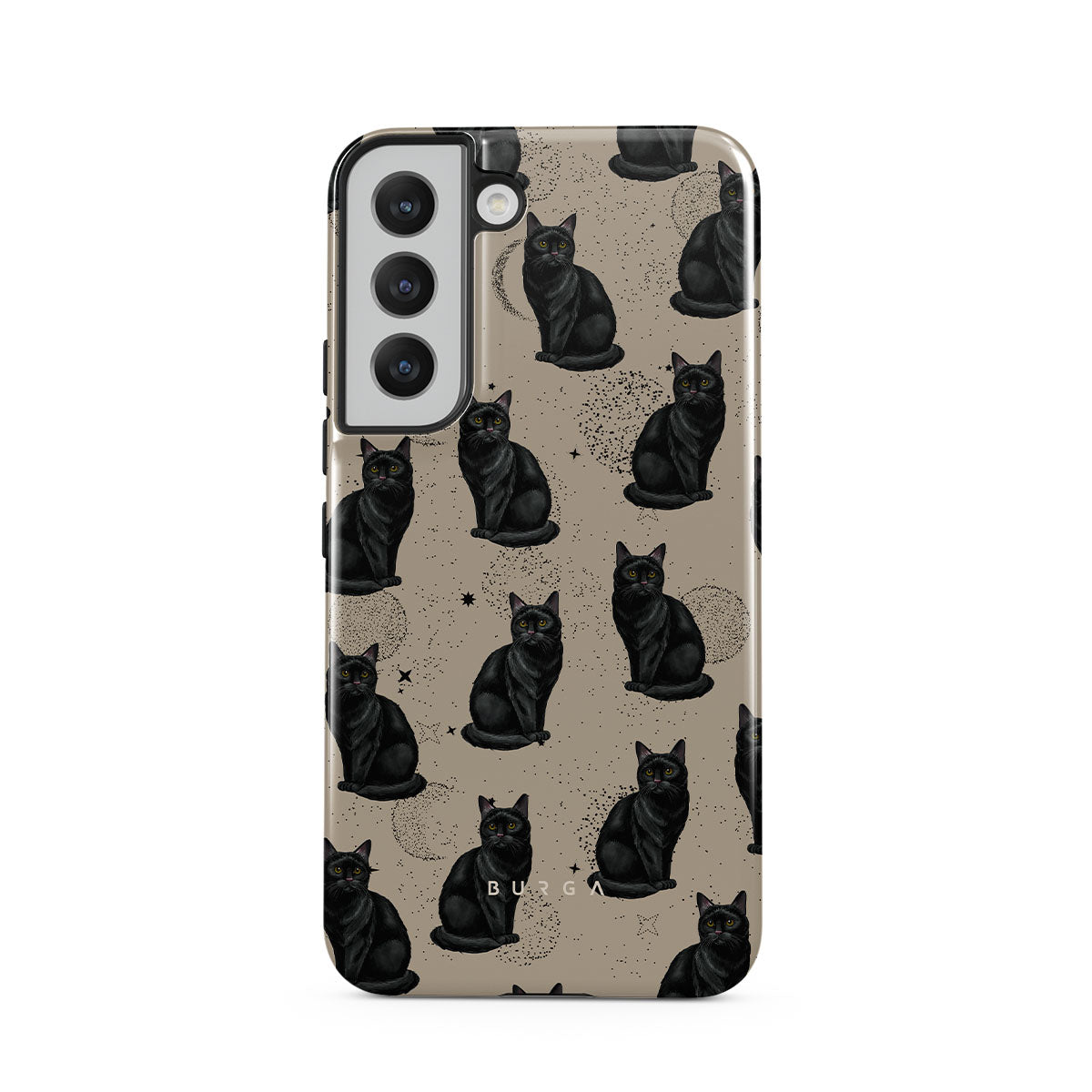 They say black cats are bad luck, but with our Salem Samsung Galaxy S22 phone case design, fortune follows wherever these little guardians go. These cats aren't just symbols; they’re your protectors in the mysterious world of style. Superstitious or not, this one’s got your back.