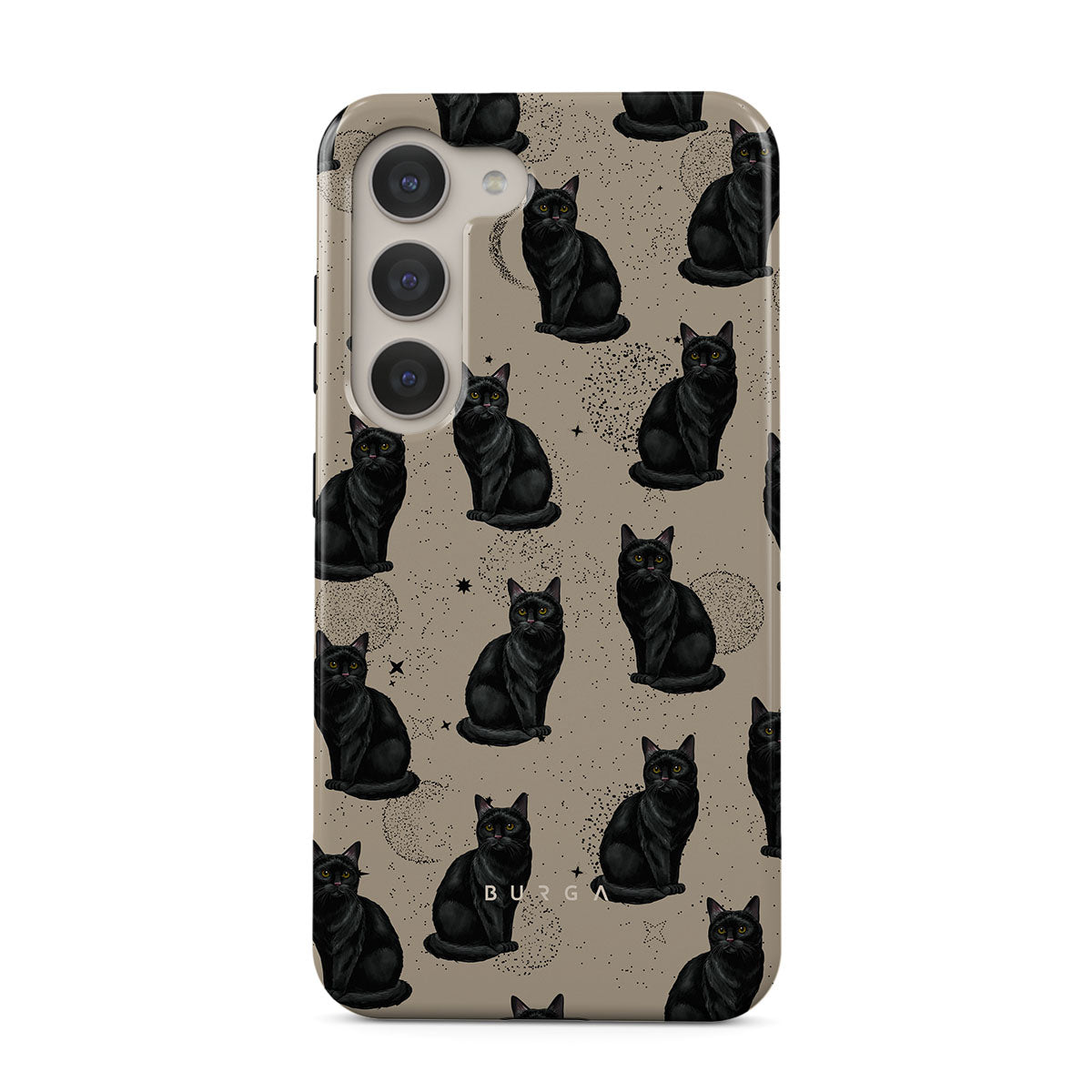 They say black cats are bad luck, but with our Salem Samsung Galaxy S23 phone case design, fortune follows wherever these little guardians go. These cats aren't just symbols; they’re your protectors in the mysterious world of style. Superstitious or not, this one’s got your back.