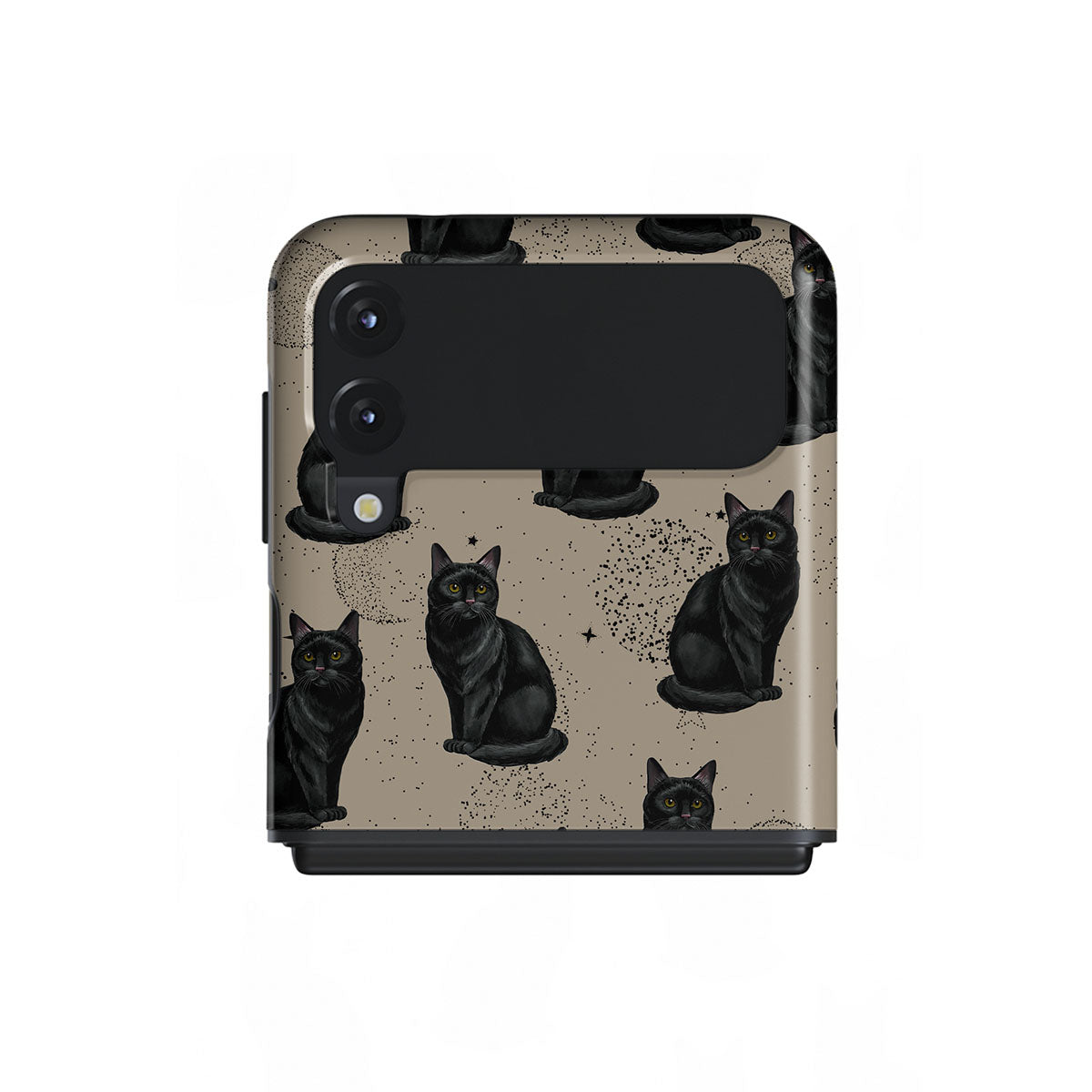 They say black cats are bad luck, but with our Salem Samsung Galaxy Z Flip 3 phone case design, fortune follows wherever these little guardians go. These cats aren't just symbols; they’re your protectors in the mysterious world of style. Superstitious or not, this one’s got your back.