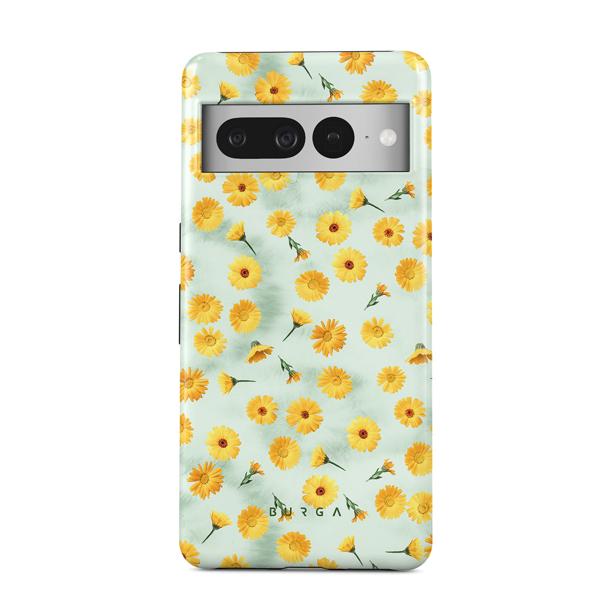 In our Sanctuary of Love Google Pixel 7 Pro phone case, a soft mint marble meets a glowing pattern of yellow flowers that will surely add a splash of energy to your style while protecting your phone from dangerous falls.
